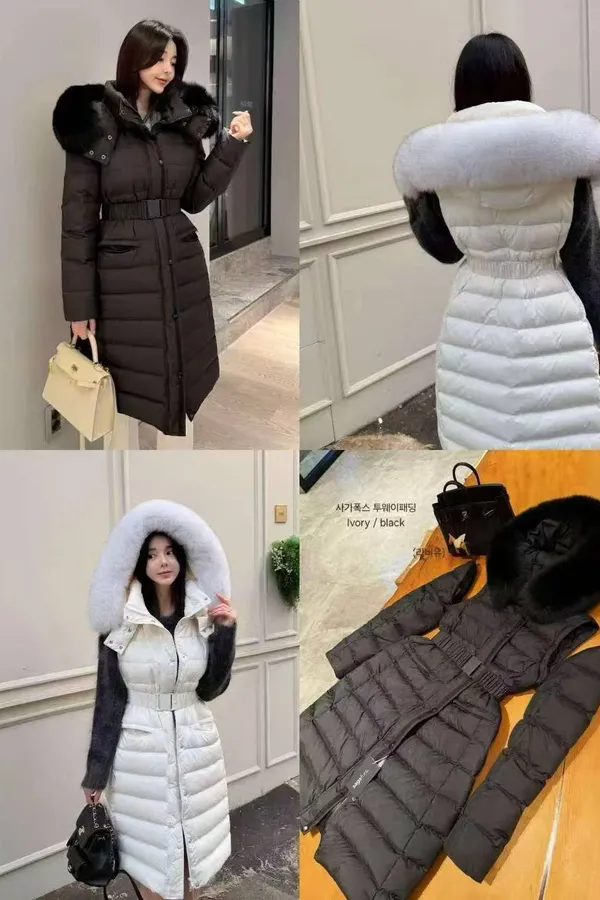 韓國連線款 鴨絨100% 手袖子可拆 毛領長版羽絨外套 大衣外套