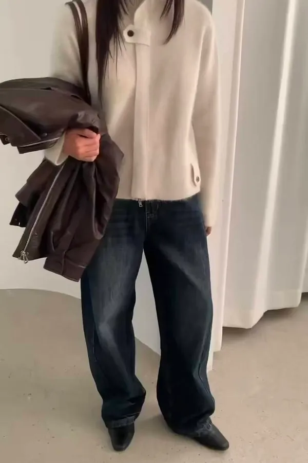 韓國連線款 羊毛高領開衫外套 立領羊毛上衣外套
