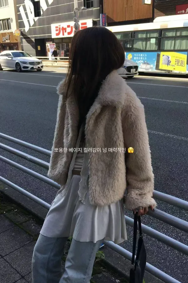 韓國連線款 短版毛絨外套 時尚保暖毛毛外套