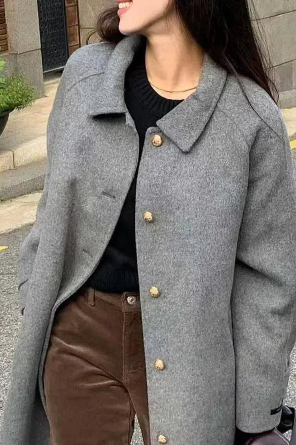 韓國連線款 羊毛單排釦羊毛大衣 保暖中長版大衣外套