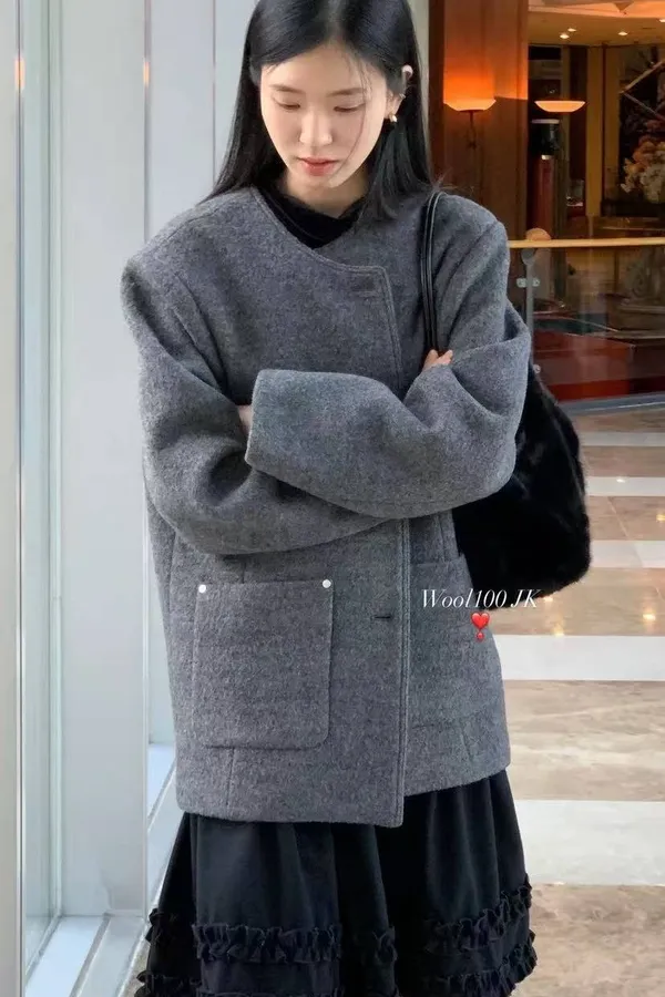 韓國代購 金釦雙面羊絨大衣外套 中長版大衣外套