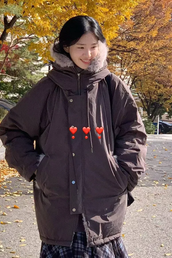 韓國代購 時尚 毛毛連帽棉服外套 中長版外套