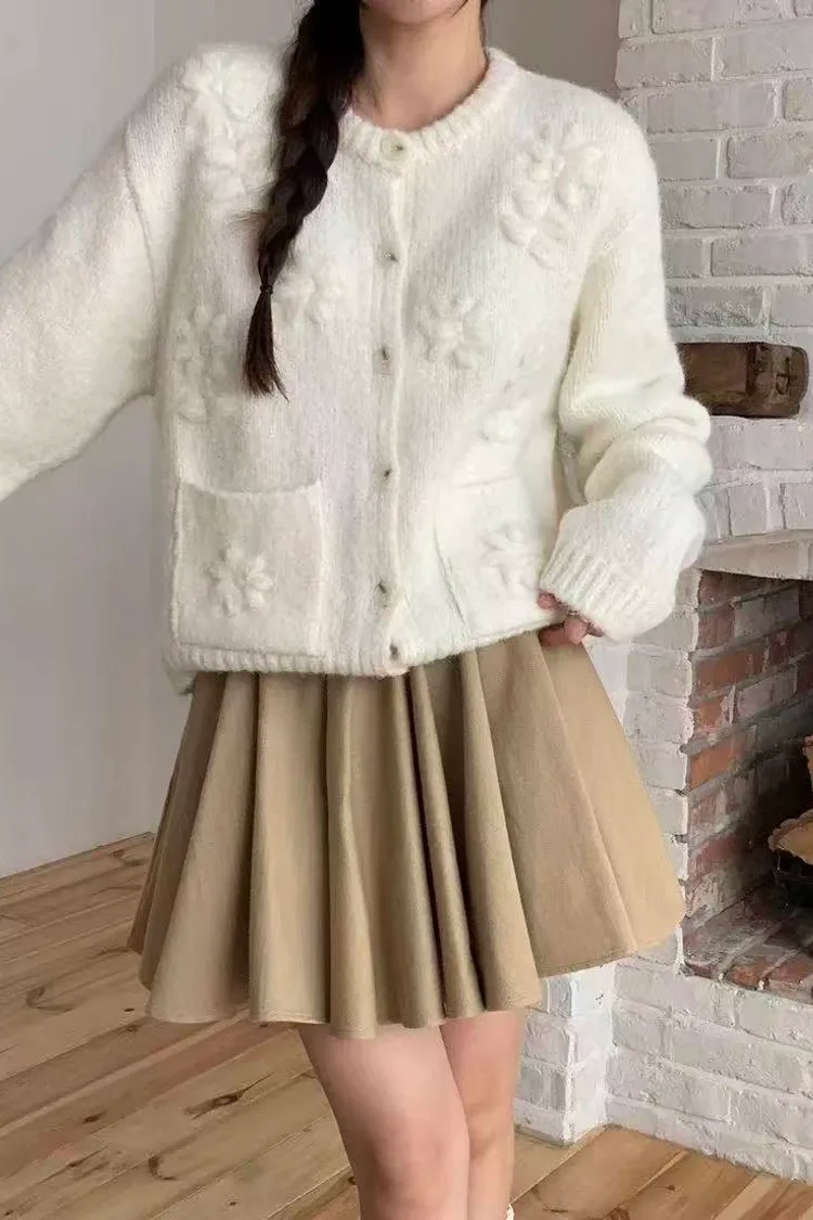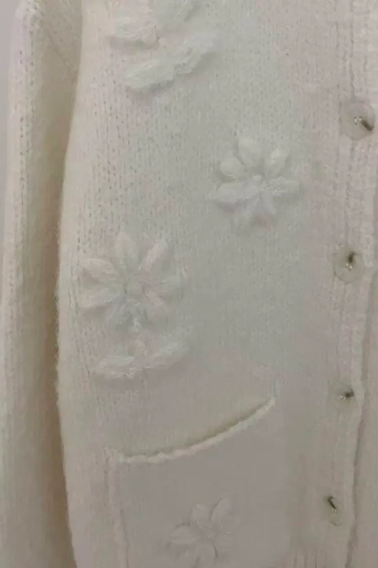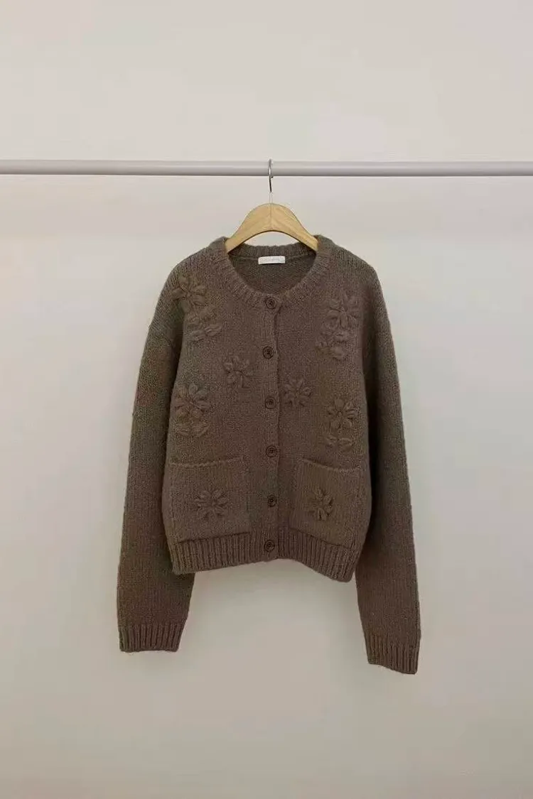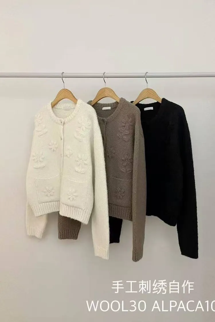 韓國連線款 手工刺繡 圓領羊毛針織外套