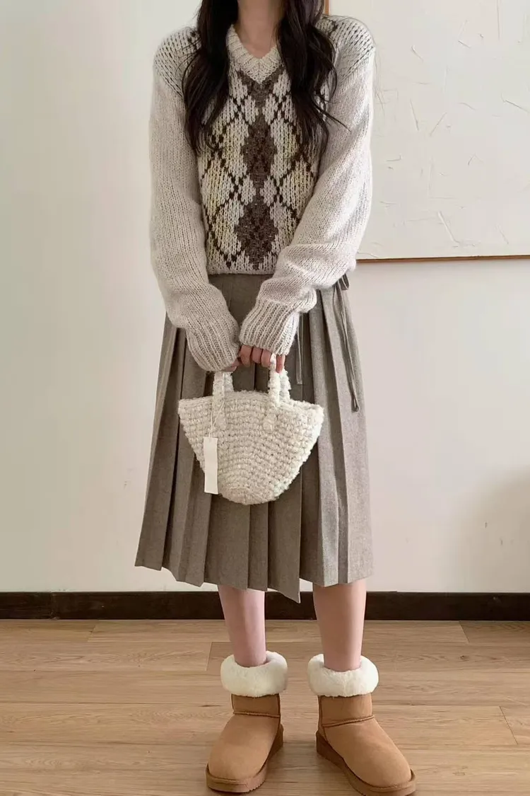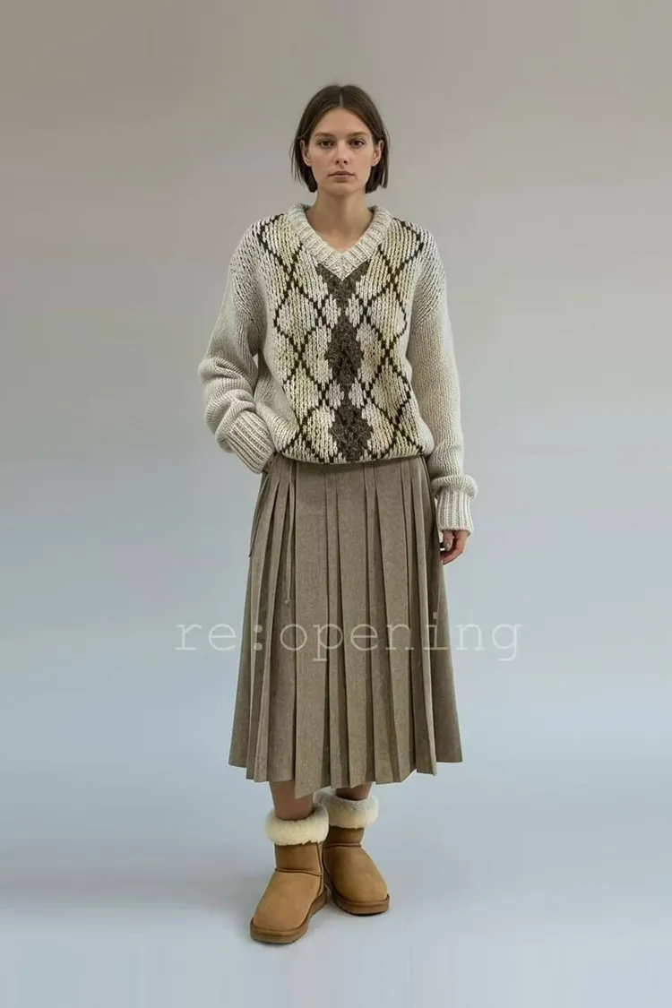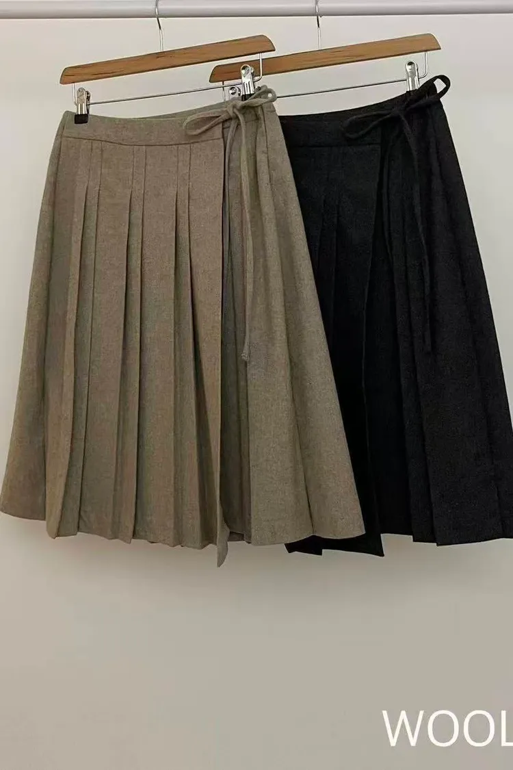 韓國連線款 好看 羊毛氣質百褶半身裙 裙子