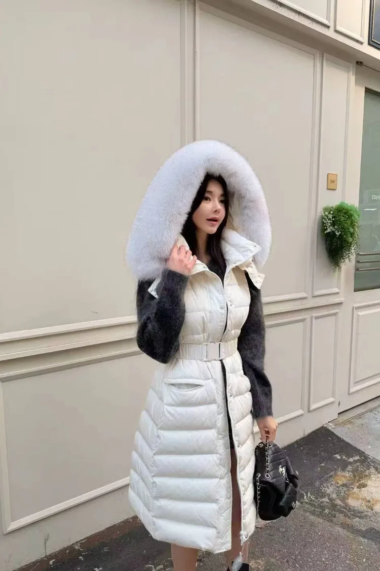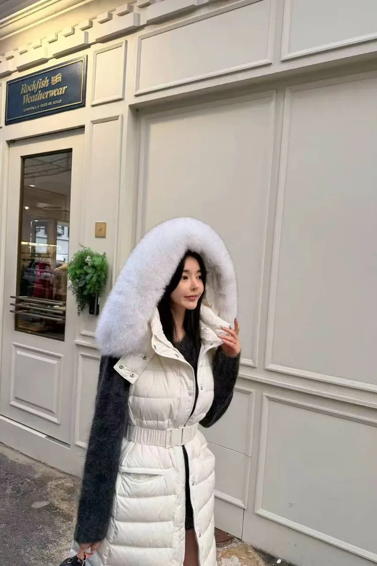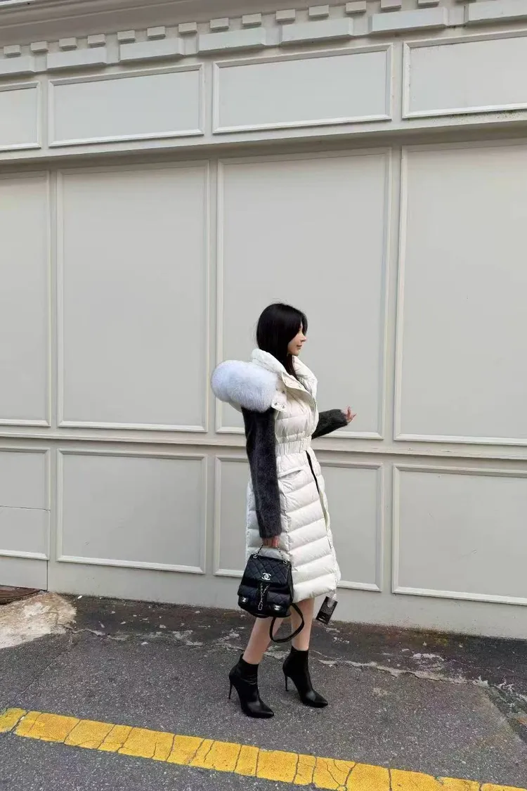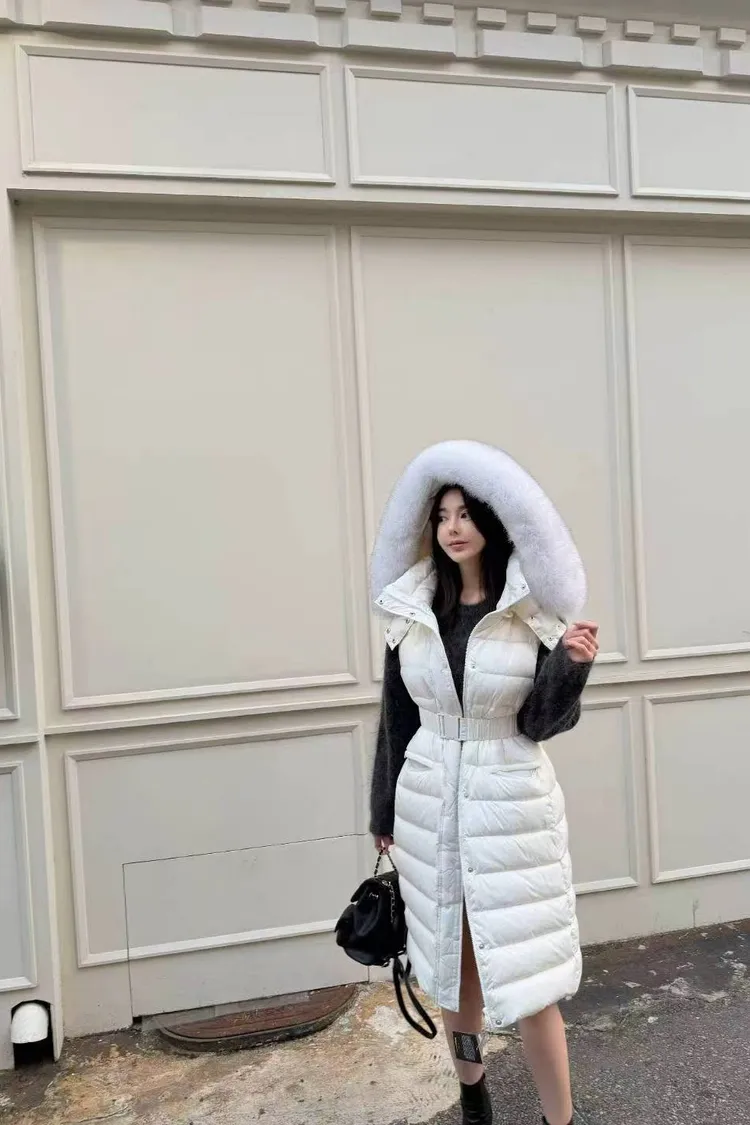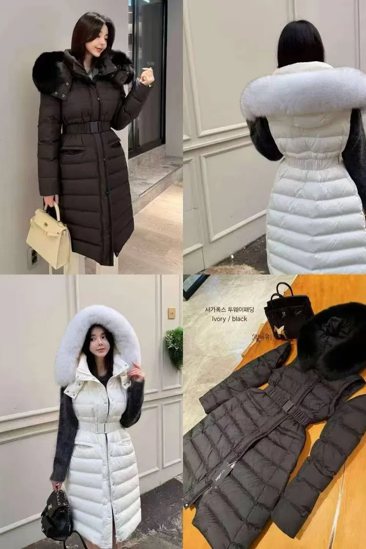 韓國連線款 鴨絨100% 手袖子可拆 毛領長版羽絨外套 大衣外套