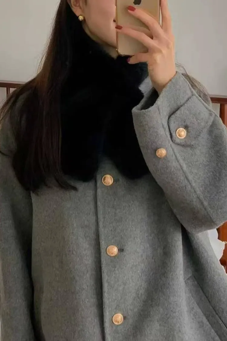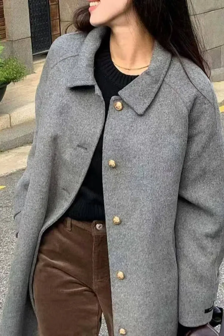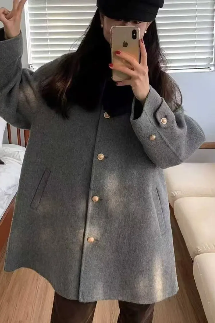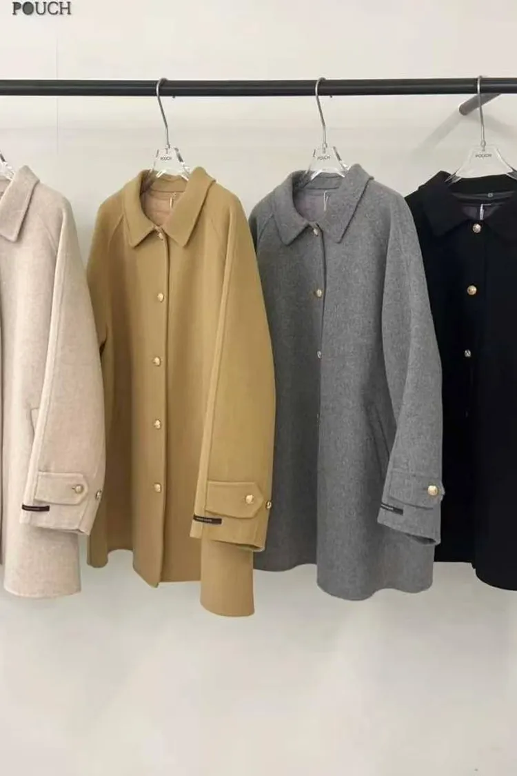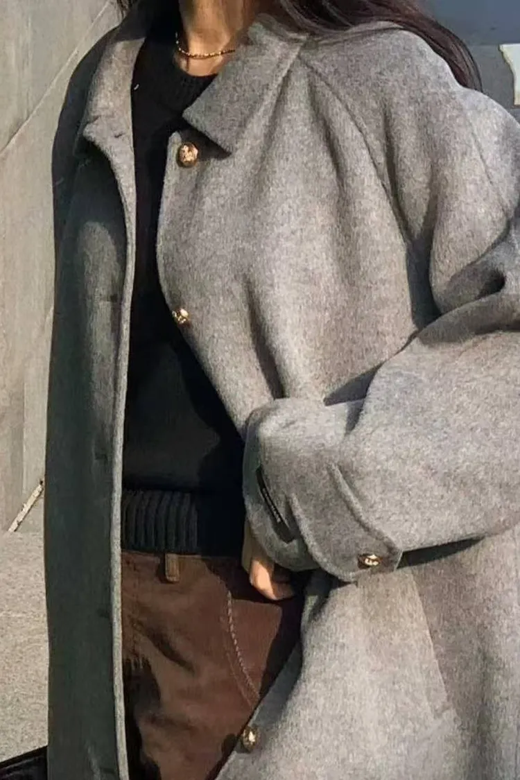韓國代購 金釦雙面羊絨大衣外套 中長版大衣外套