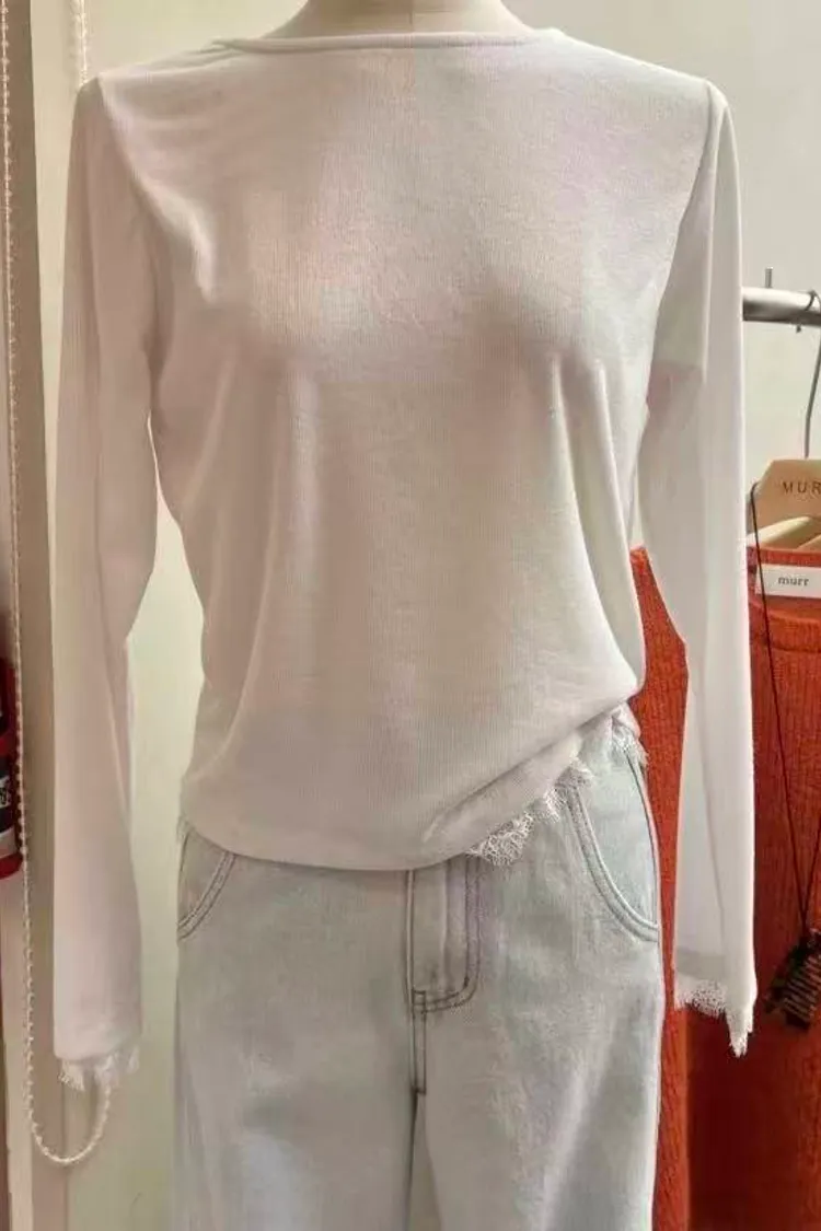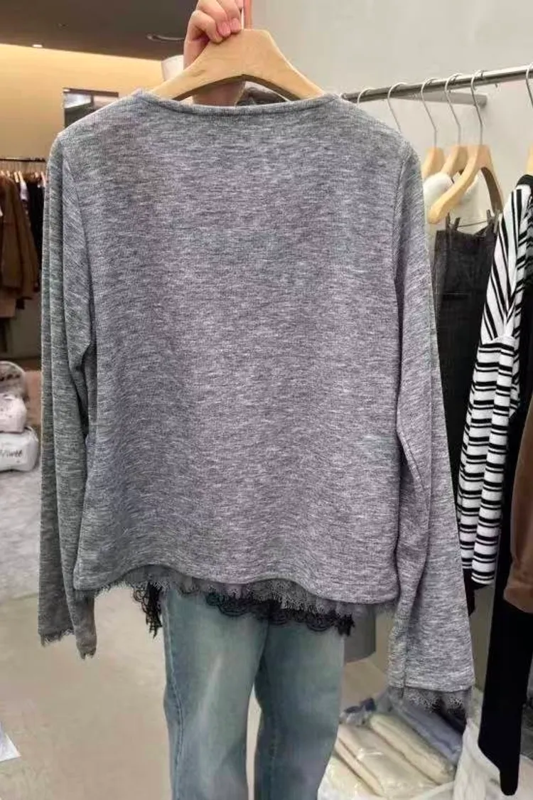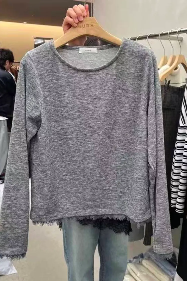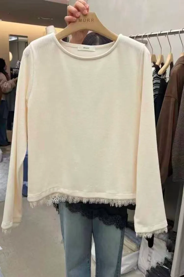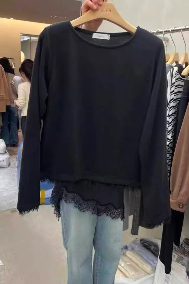韓國代購 蕾絲下擺長袖上衣 設計感上衣 長袖上衣