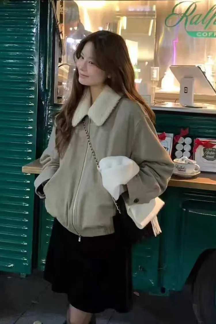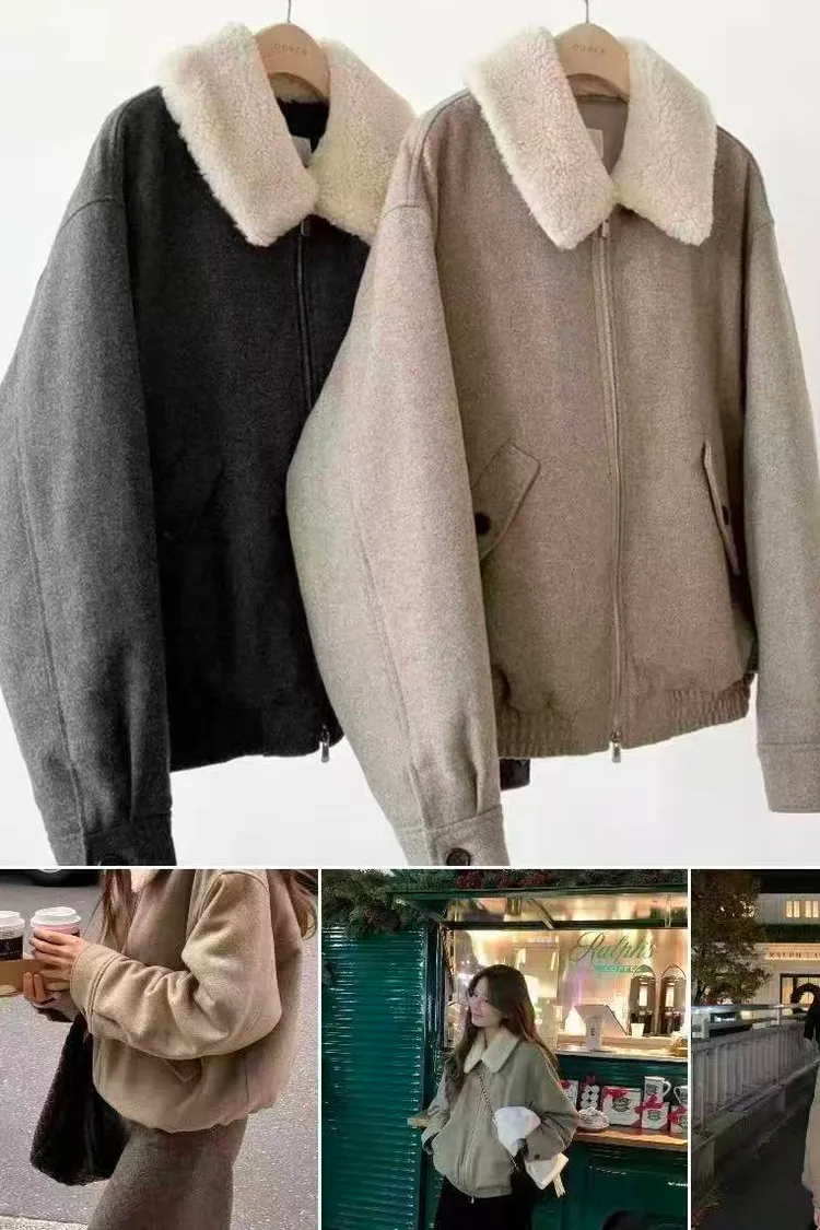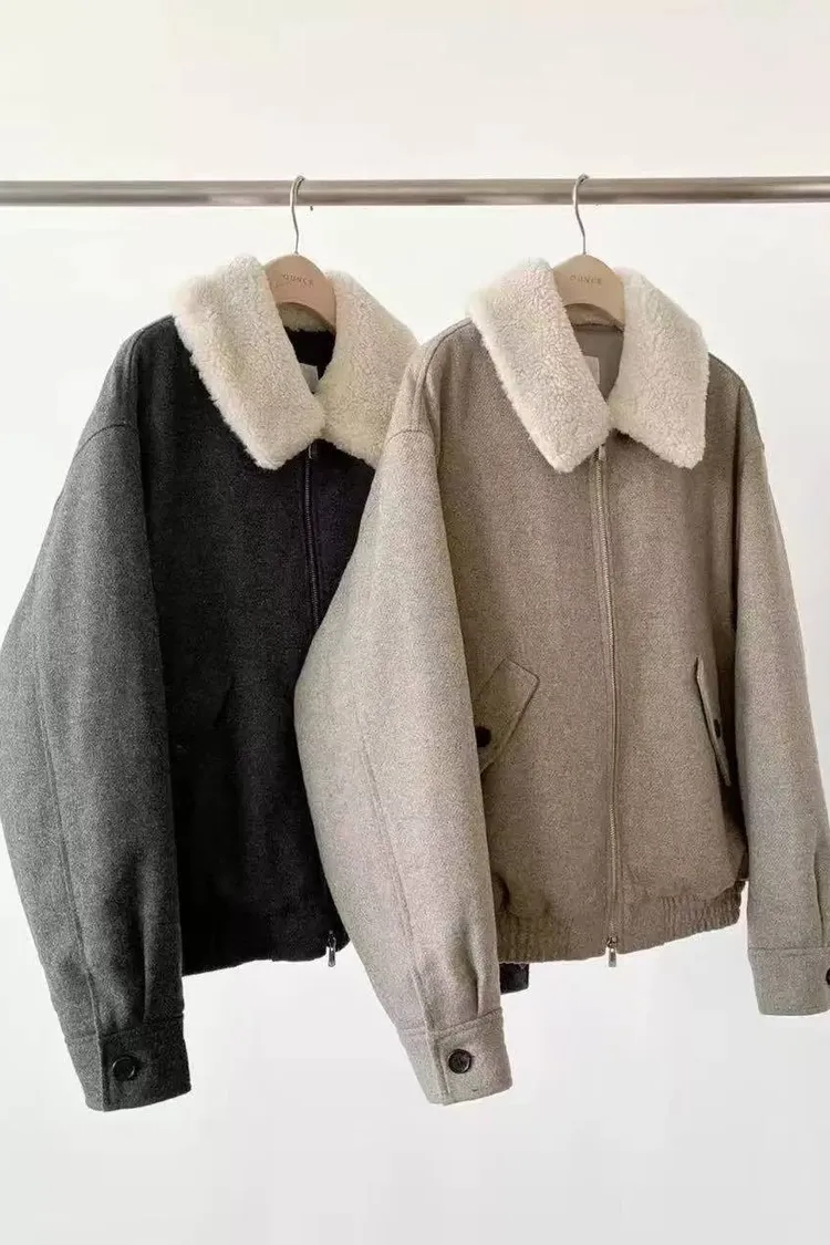 韓國代購 ounce 毛領可拆 羊毛加棉外套 夾克外套