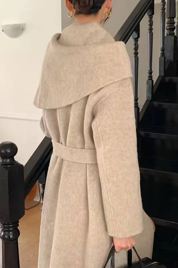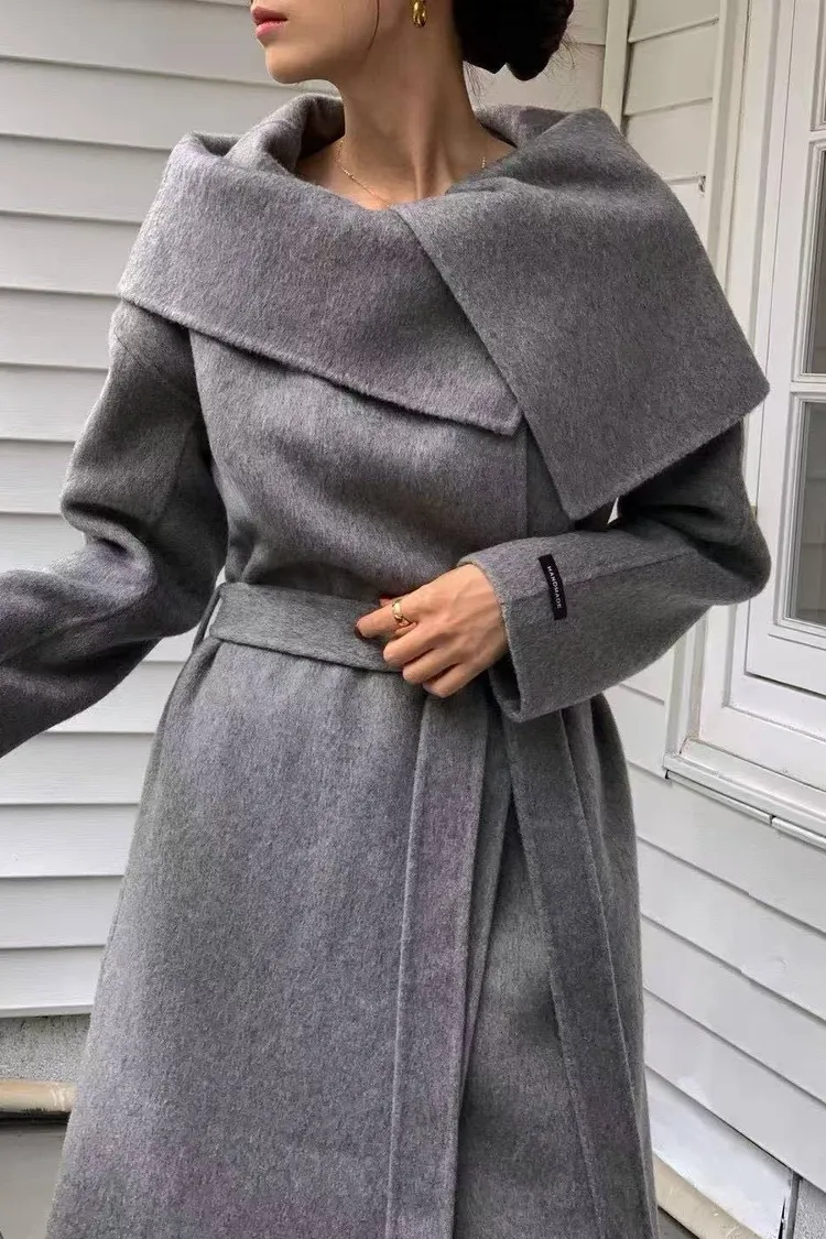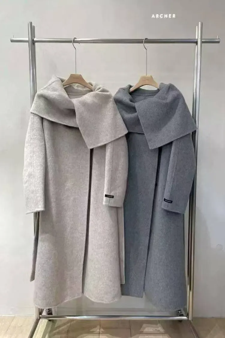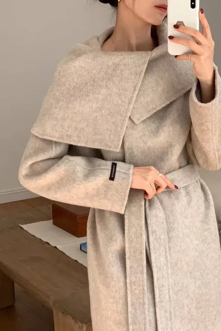 韓國代購 超美 設計感氣質大翻領羊毛大衣外套 長版大衣外套