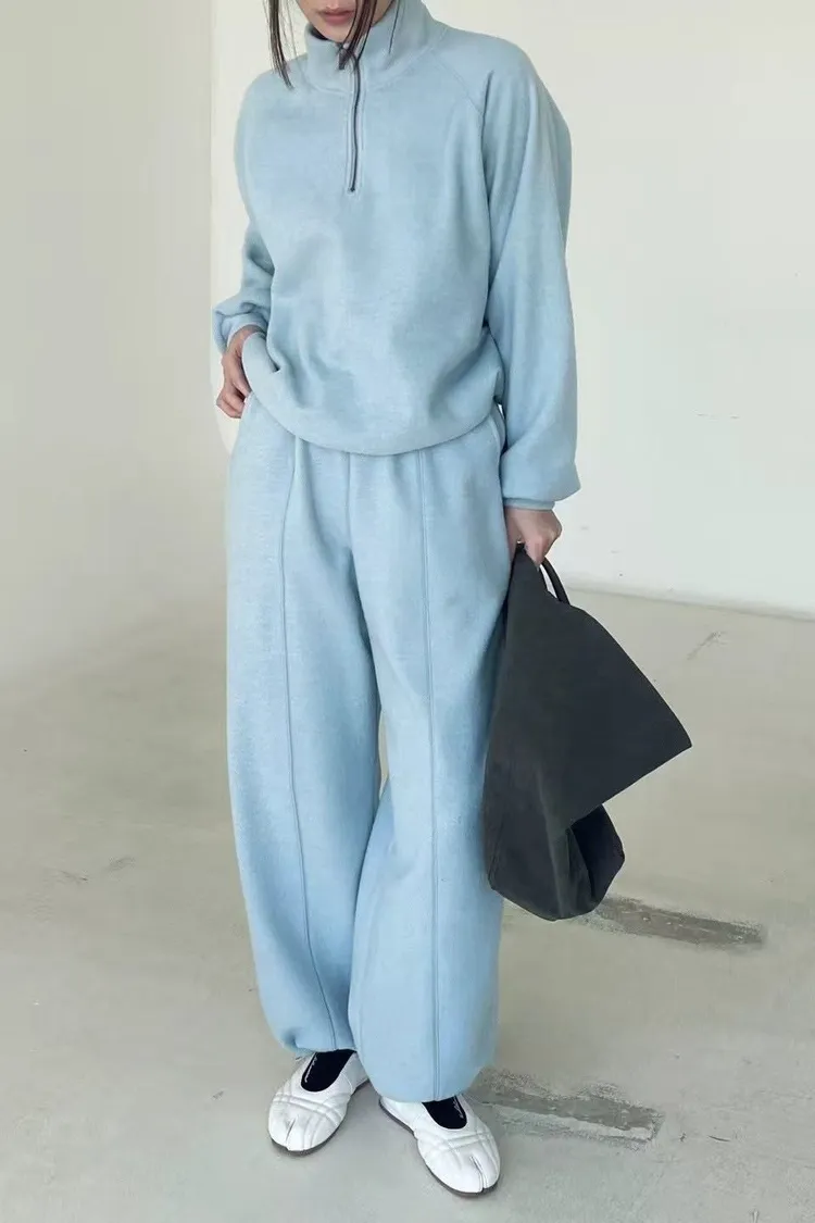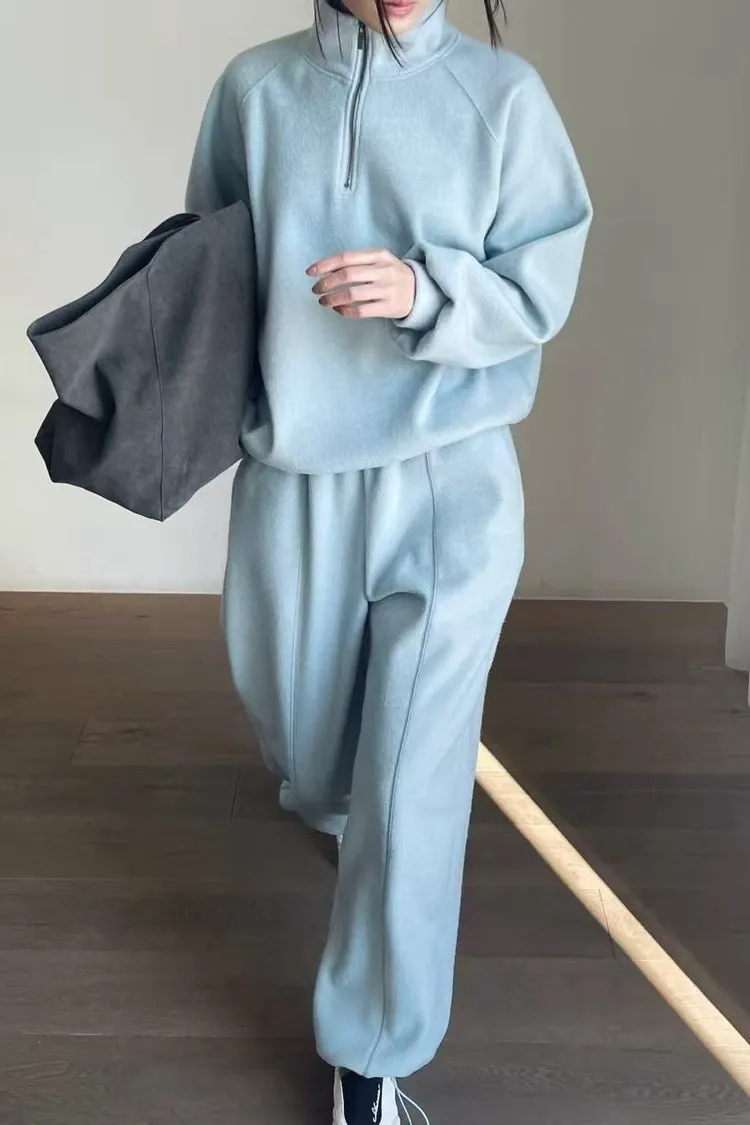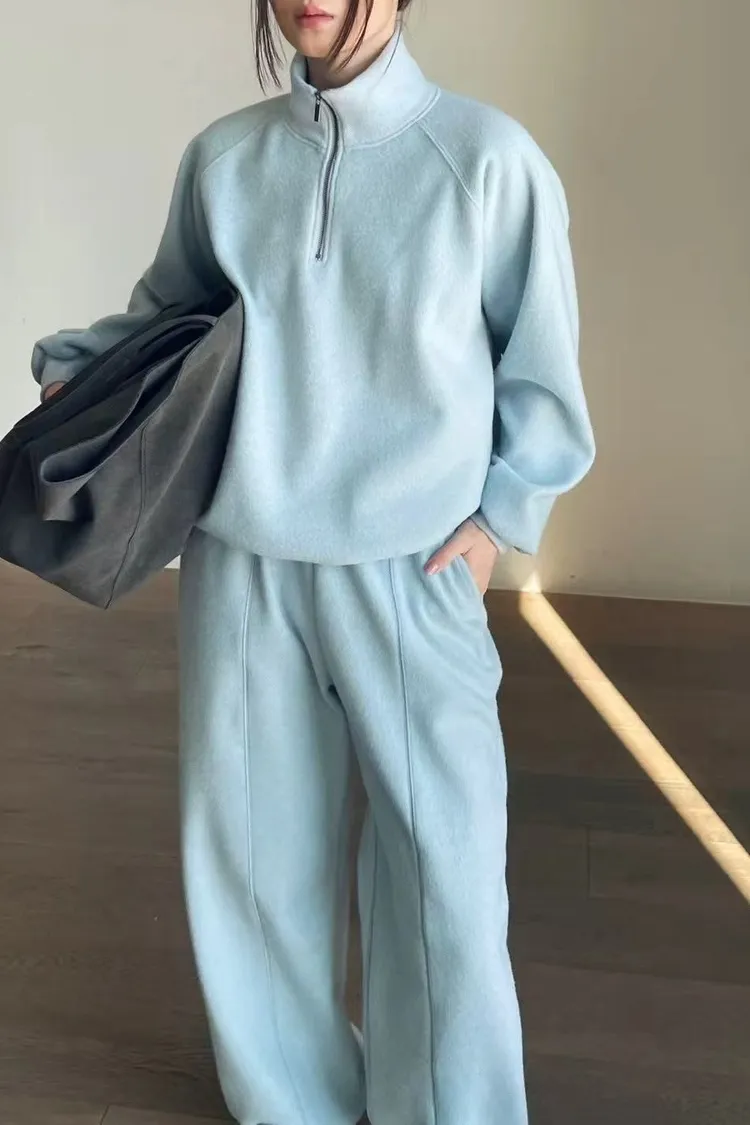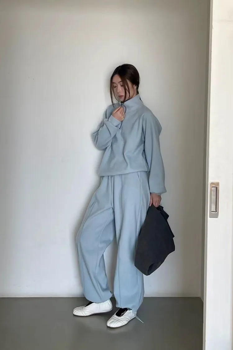 韓國連線款 刷毛高領休閒套裝 直筒內刷毛長褲 休閒套裝