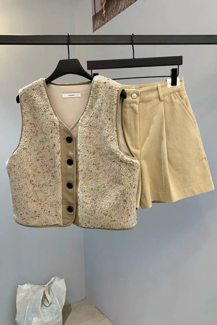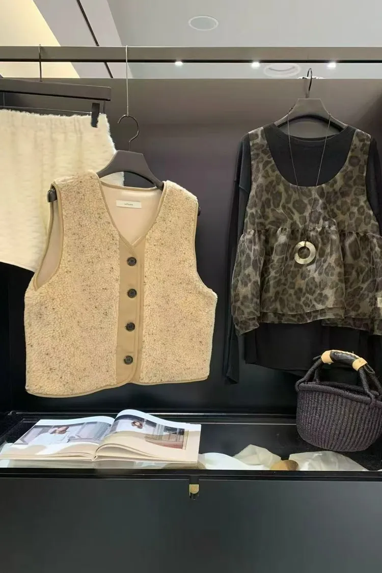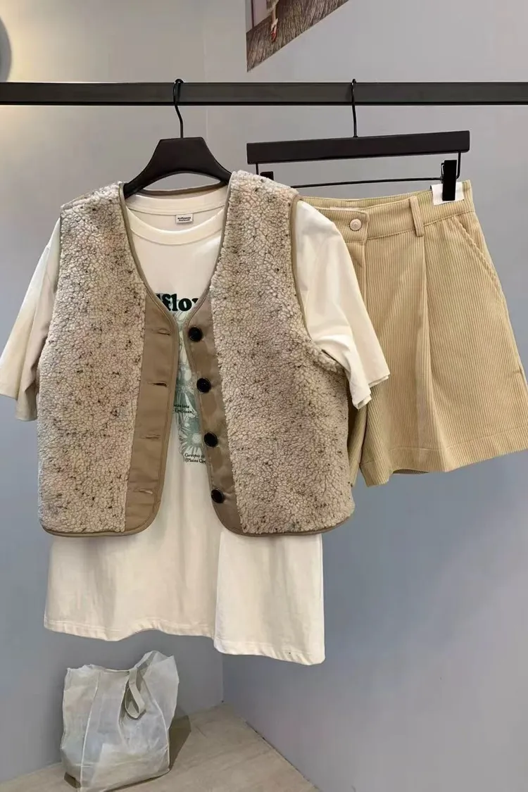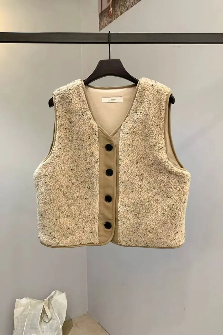 韓國連線款 毛絨質感v領背心 毛毛背心