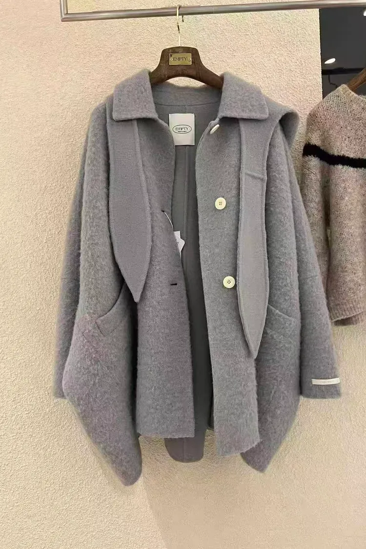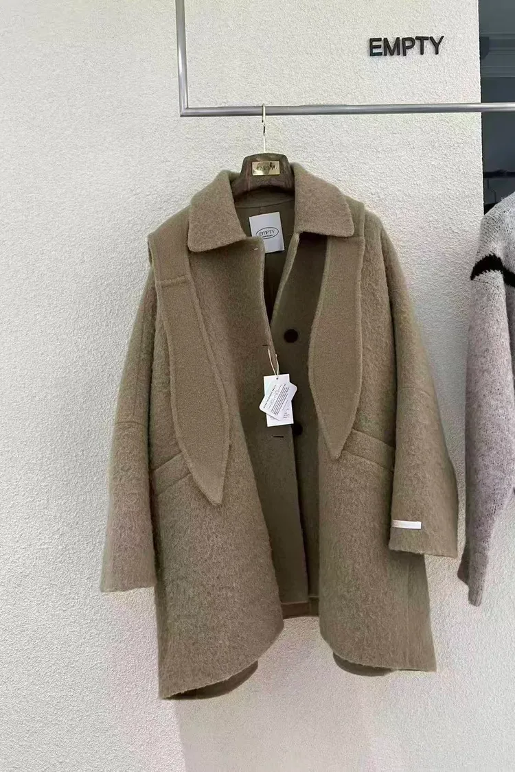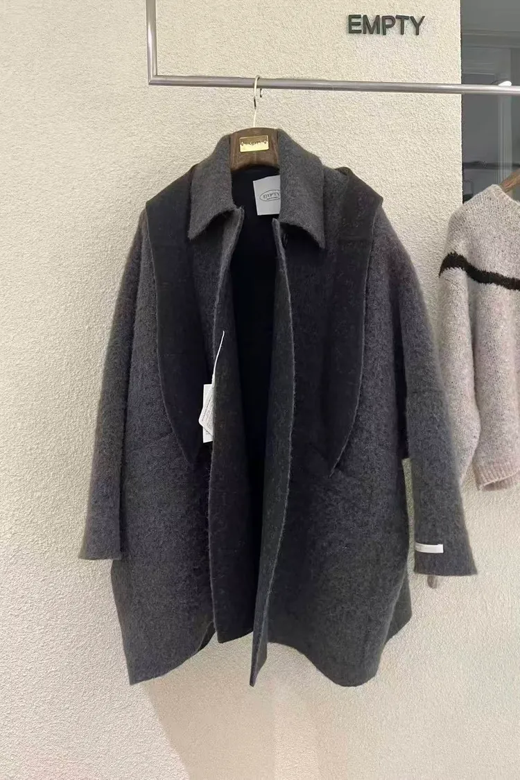 韓國代購 超細羊駝毛羊毛大衣 含帽子羊毛大衣 中長版大衣推薦