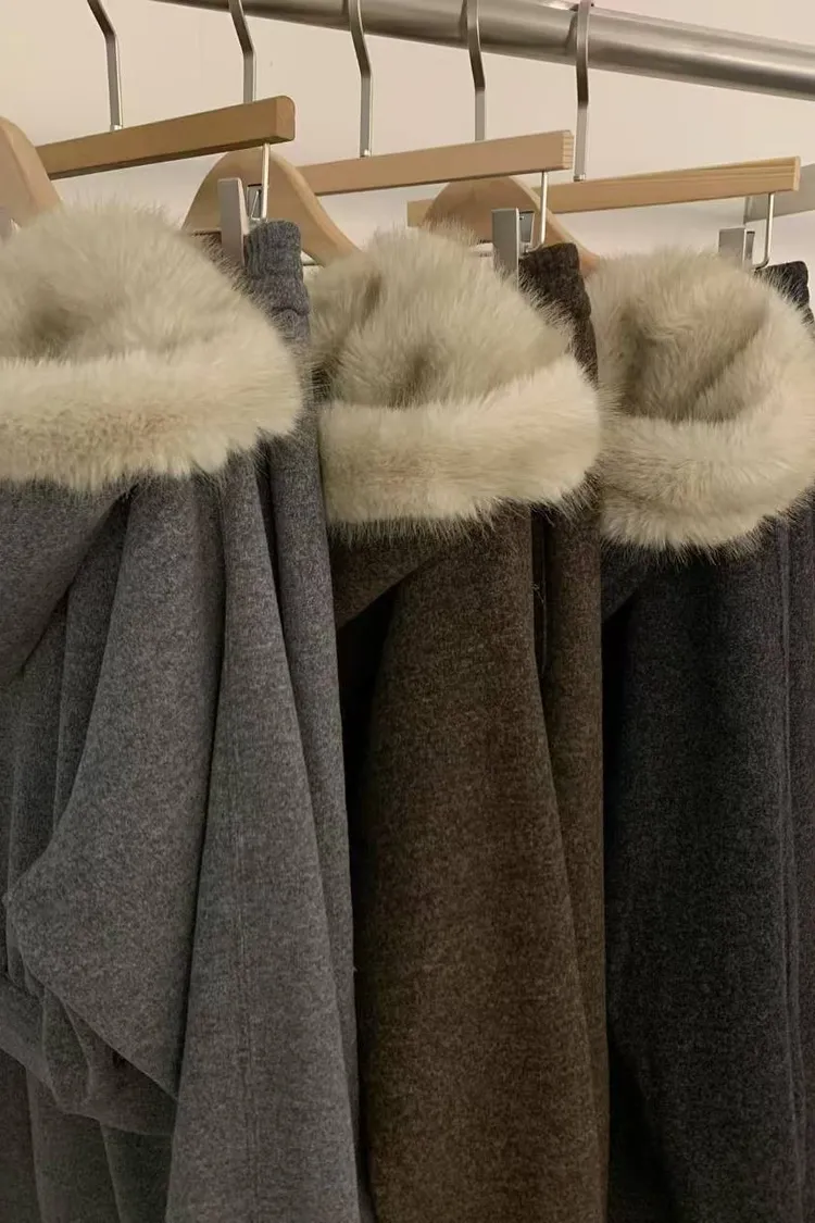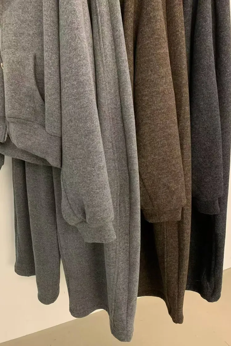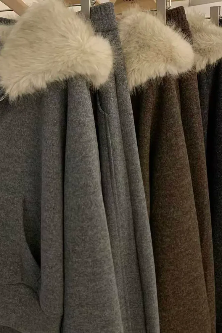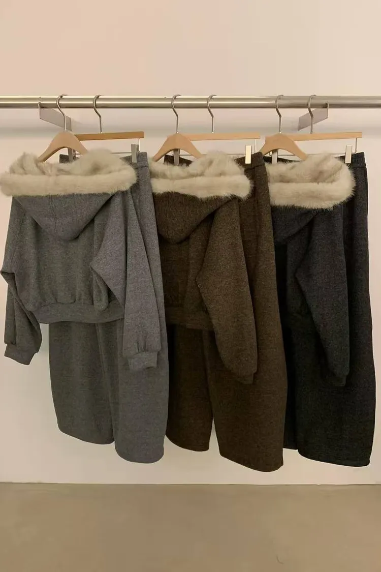 韓國連線款 羊毛毛領 連帽休閒套裝 保暖套裝 鬆緊腰長褲