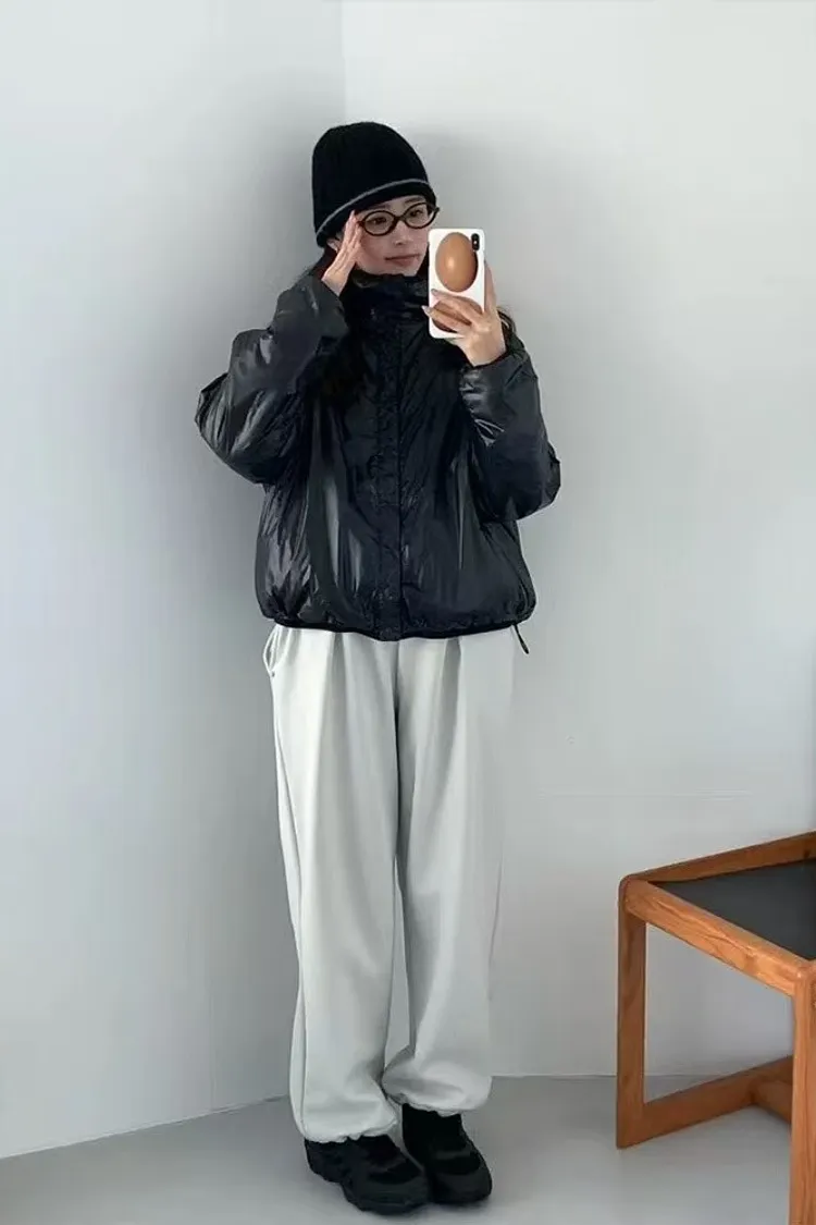韓國連線款 egg 雞蛋家 超好穿 鬆緊腰綁帶縮口褲 休閒保暖長褲