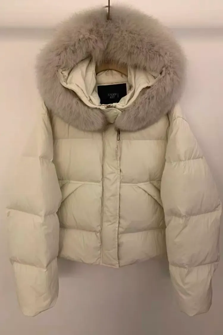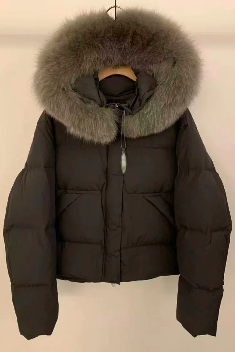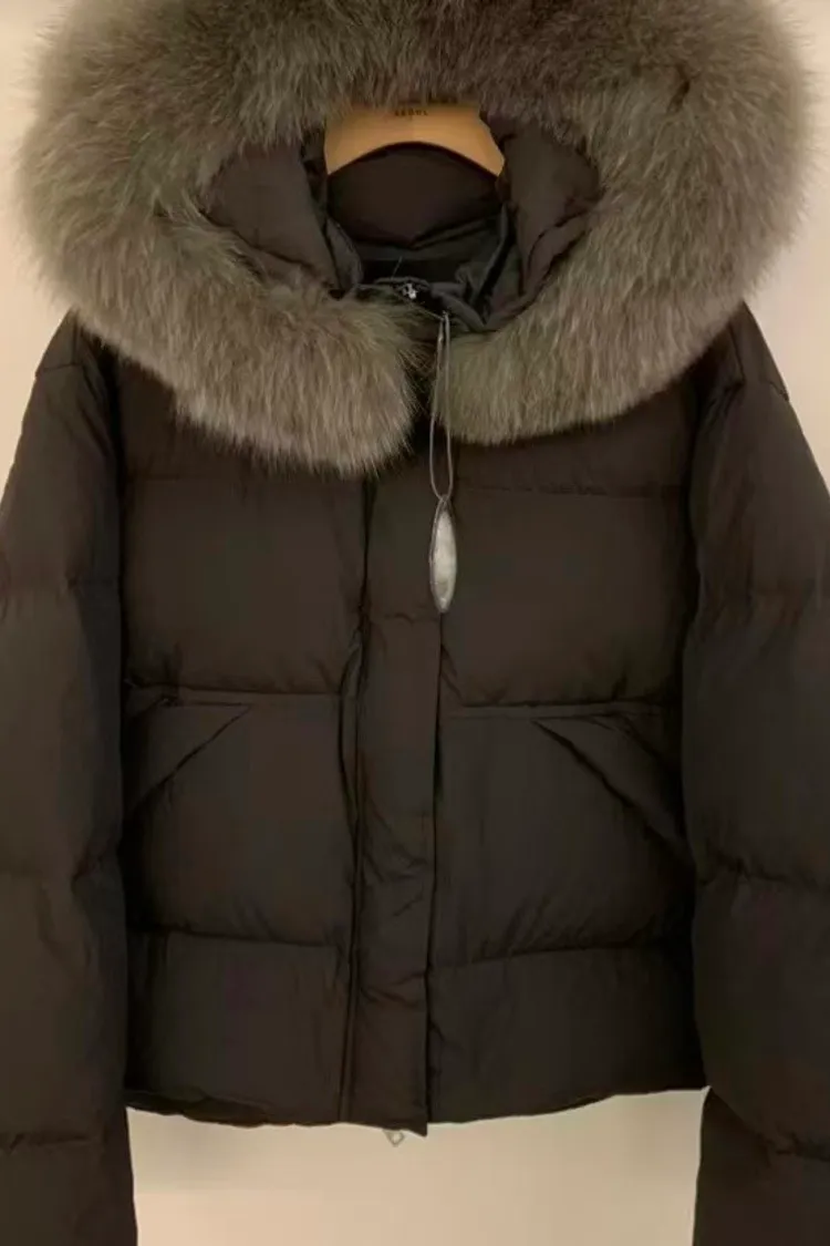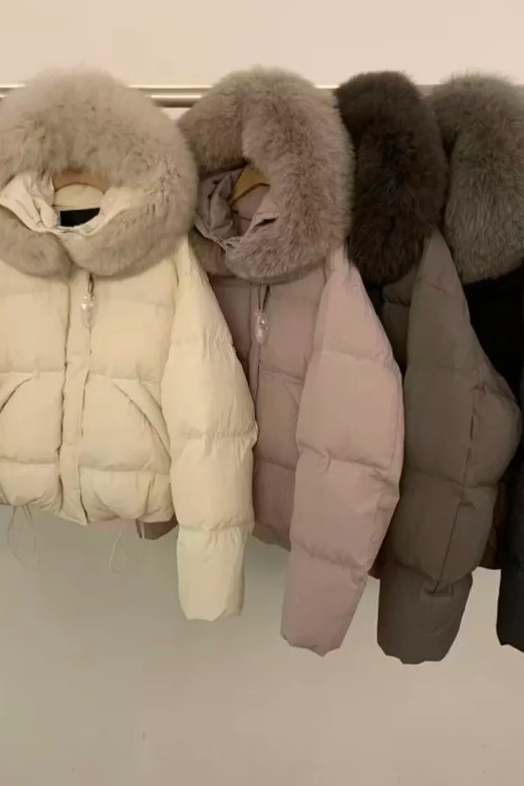 韓國連線款 超美 連帽 狐狸毛領鴨絨羽絨外套