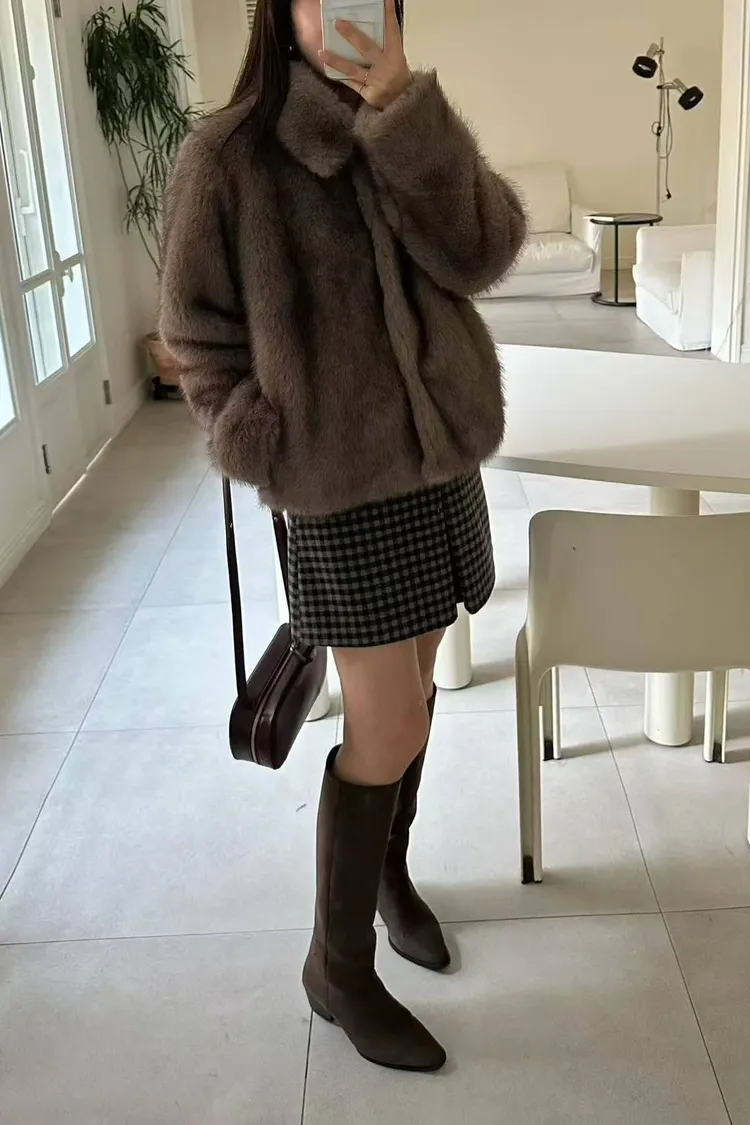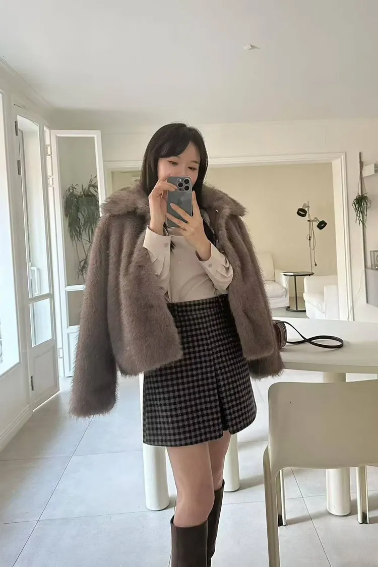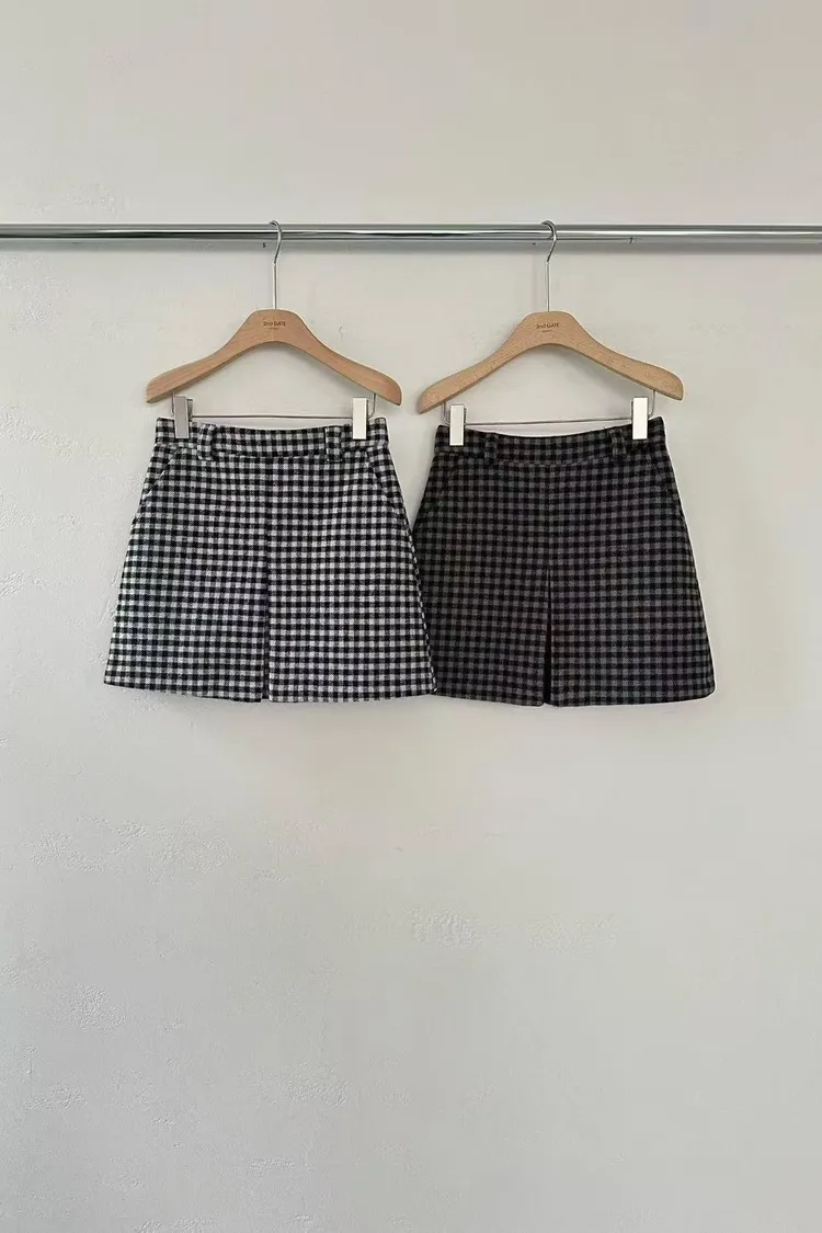 韓國連線款 羊毛顯瘦格子短裙 半身裙