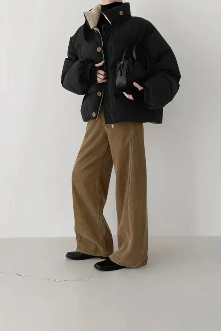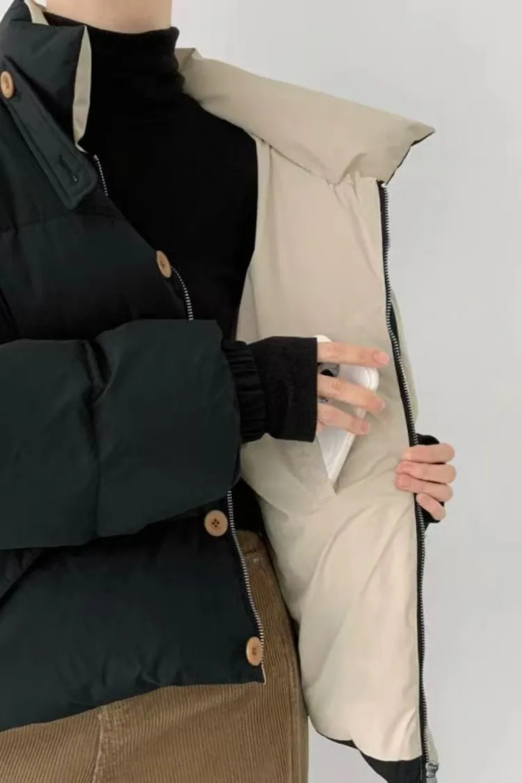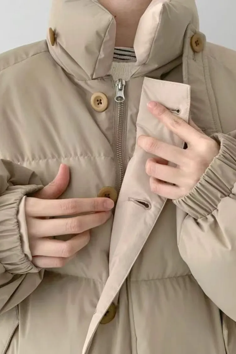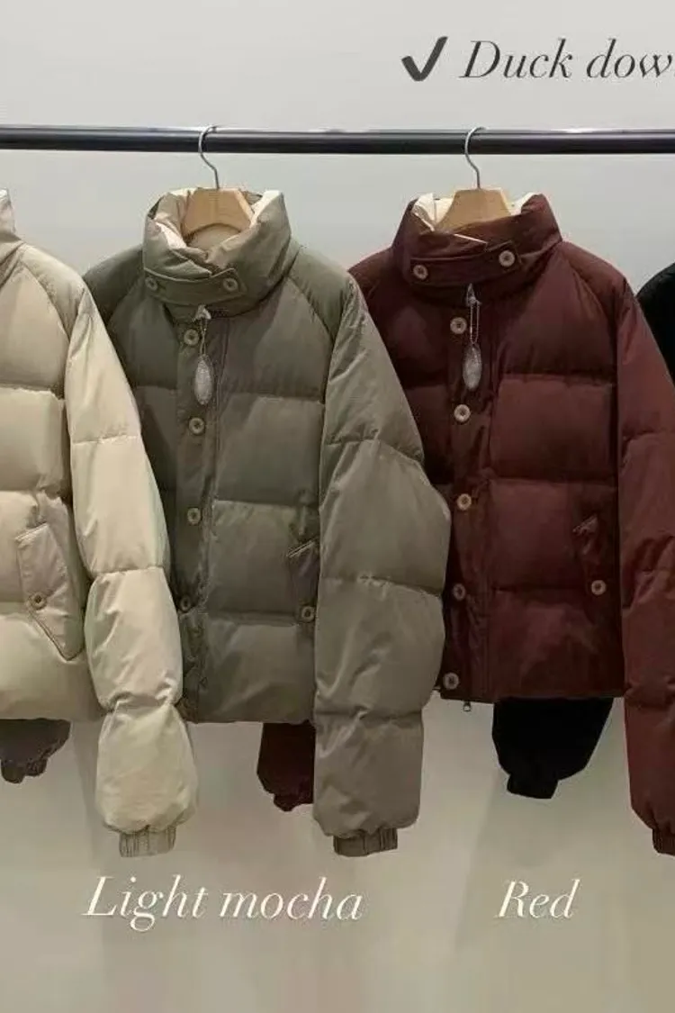 韓國連線款 鴨絨 質感麵包羽絨外套 立領保暖羽絨外套