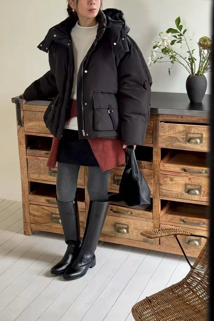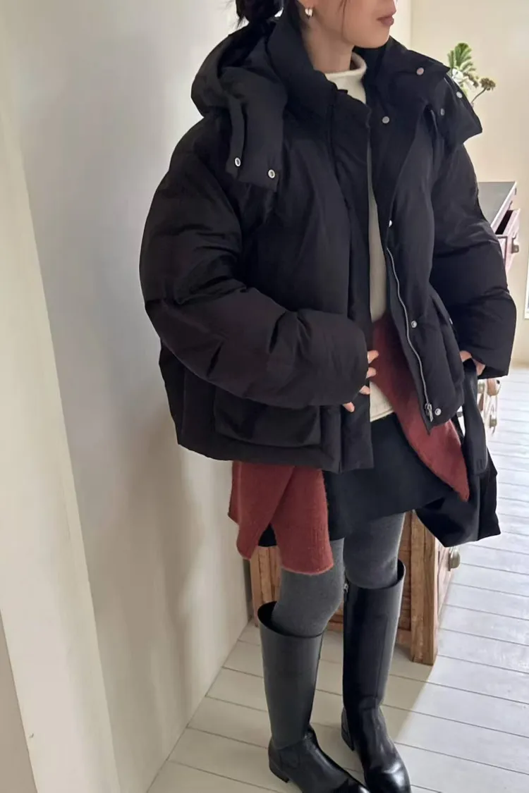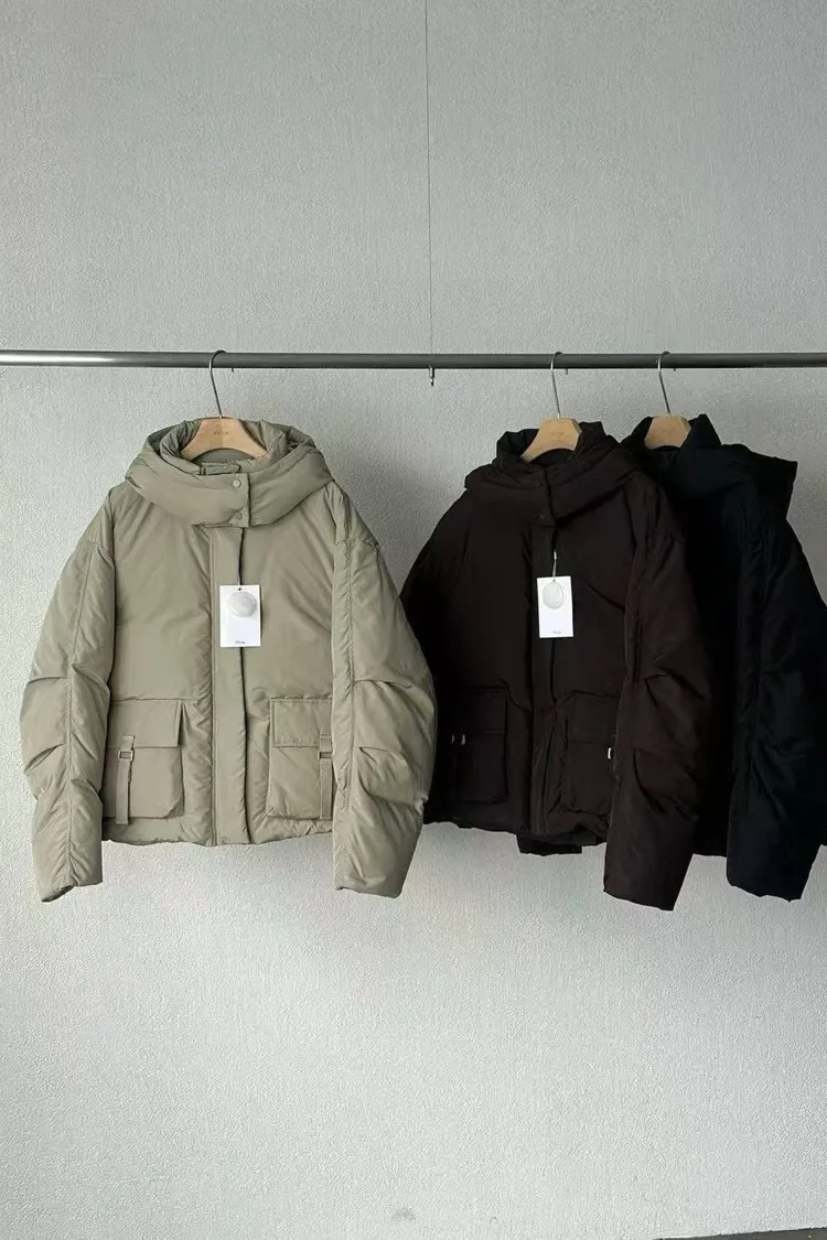 韓國連線款 鴨絨100% 帽子可拆 連帽保暖羽絨外套 雙口袋設計