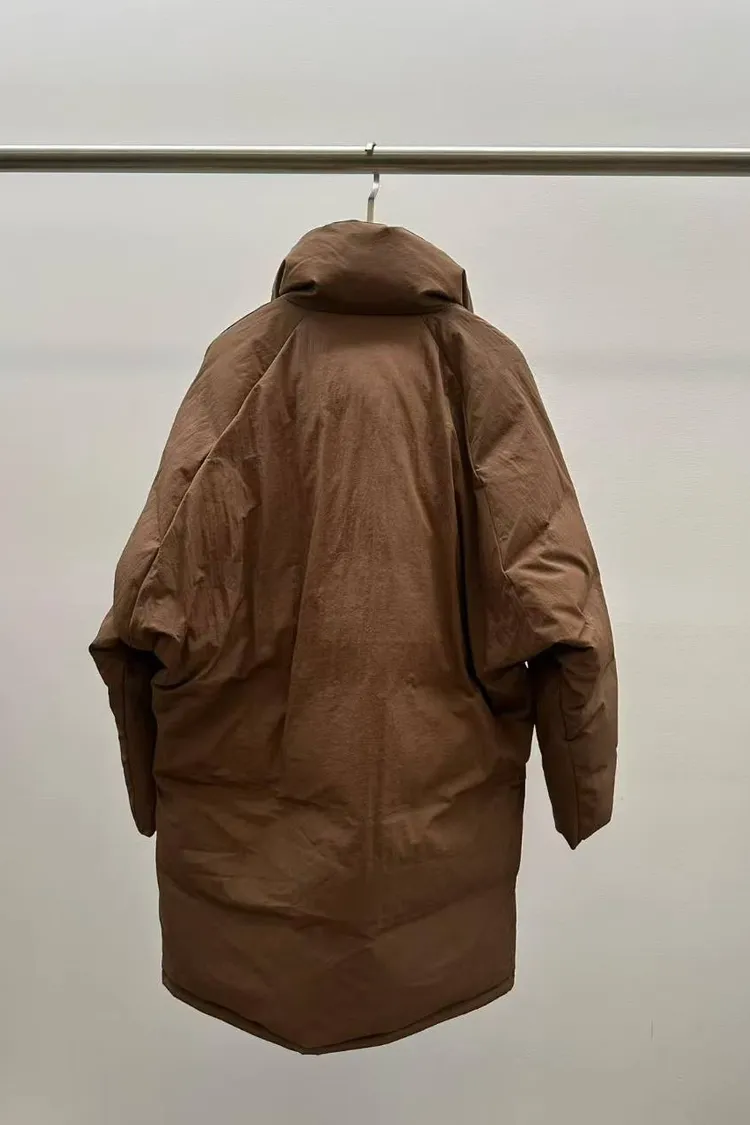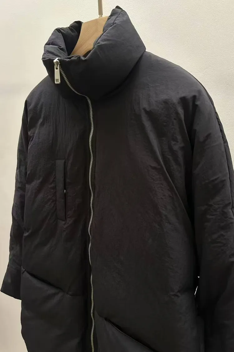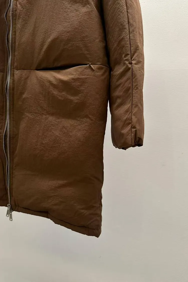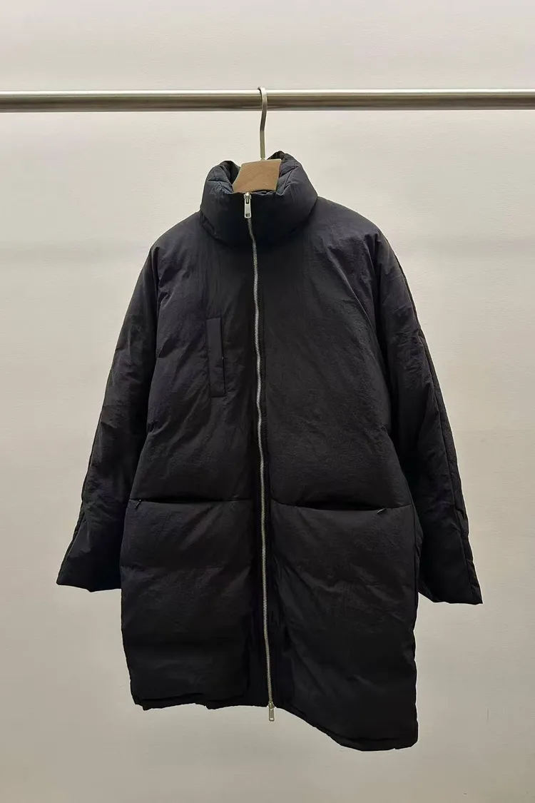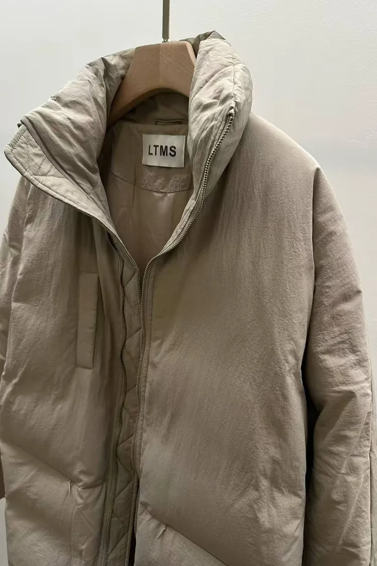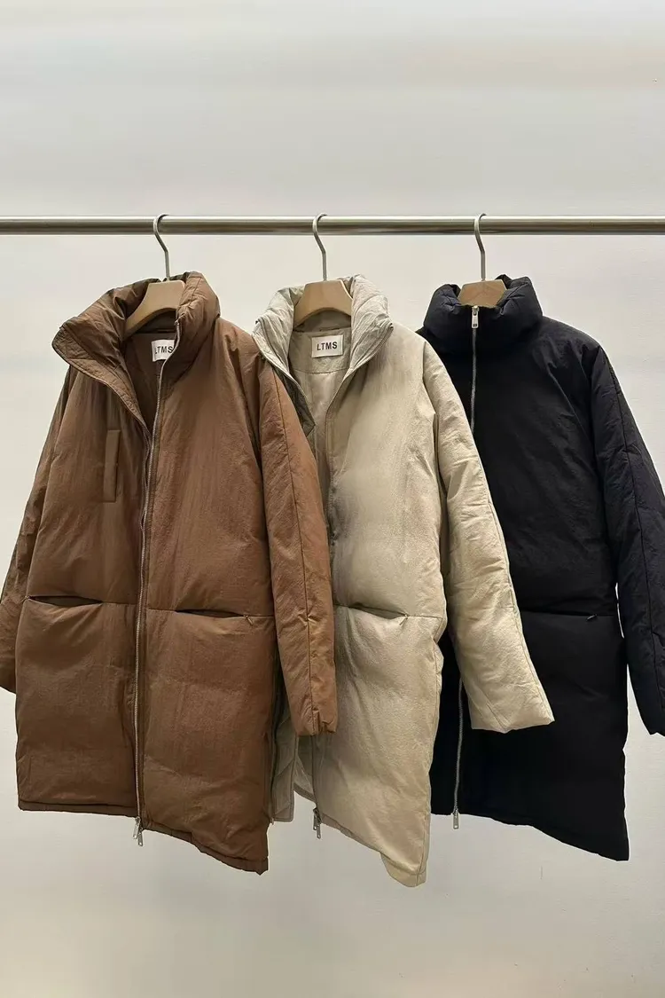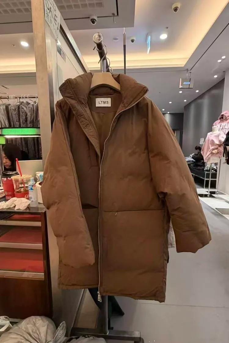 韓國連線款 鴨絨立領保暖拉鍊外套 中長版羽絨外套
