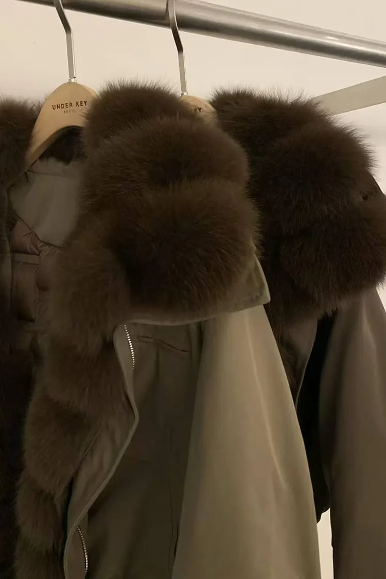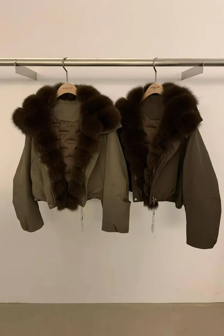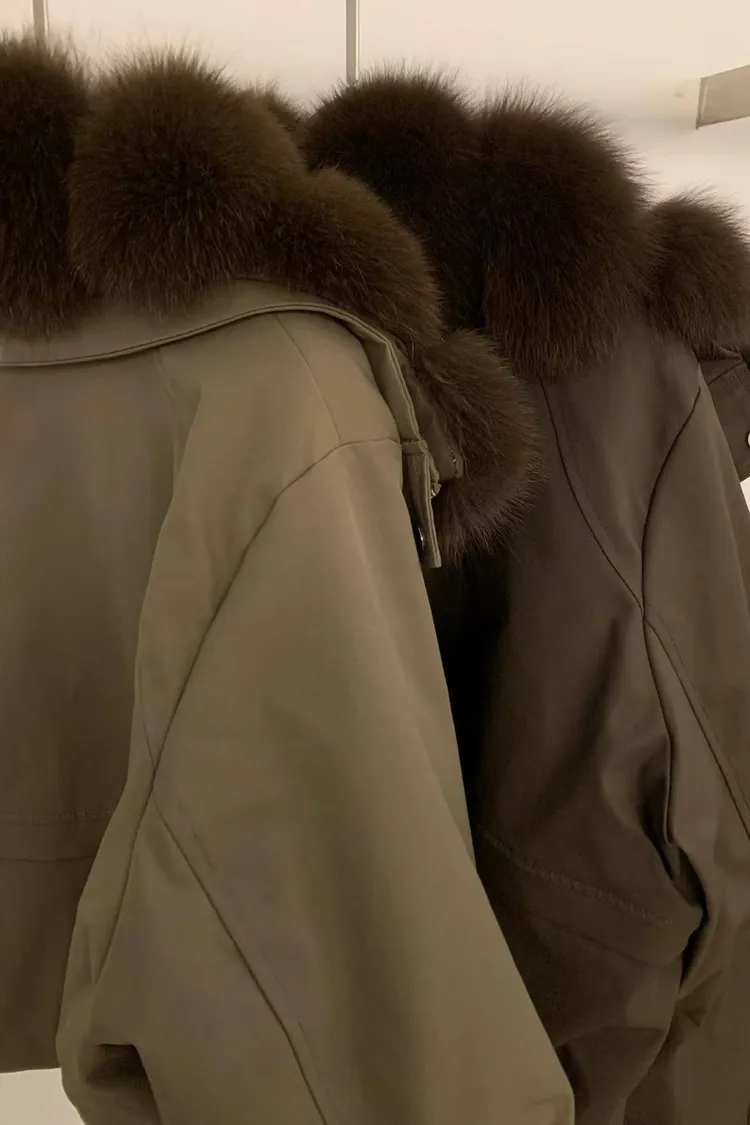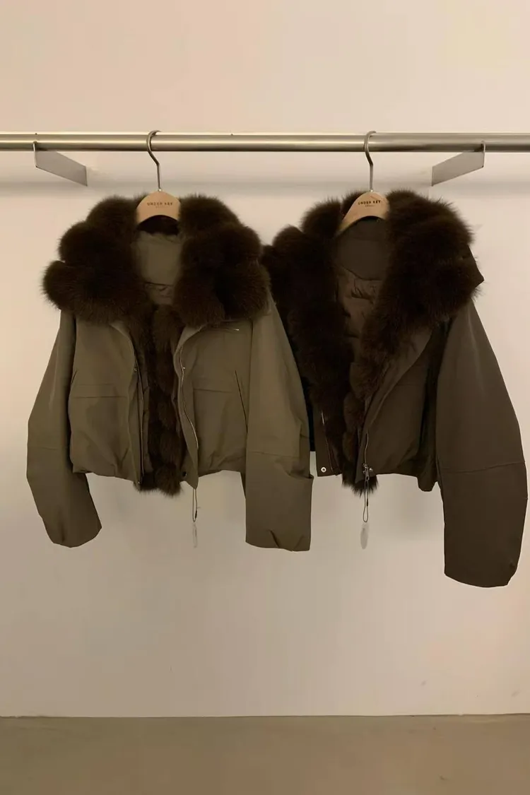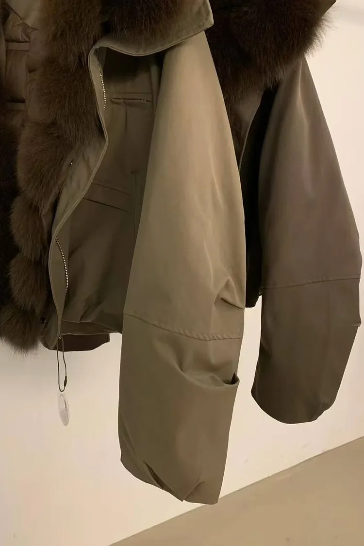 韓國連線款 真狐狸毛鵝絨羽絨外套 保暖毛毛外套