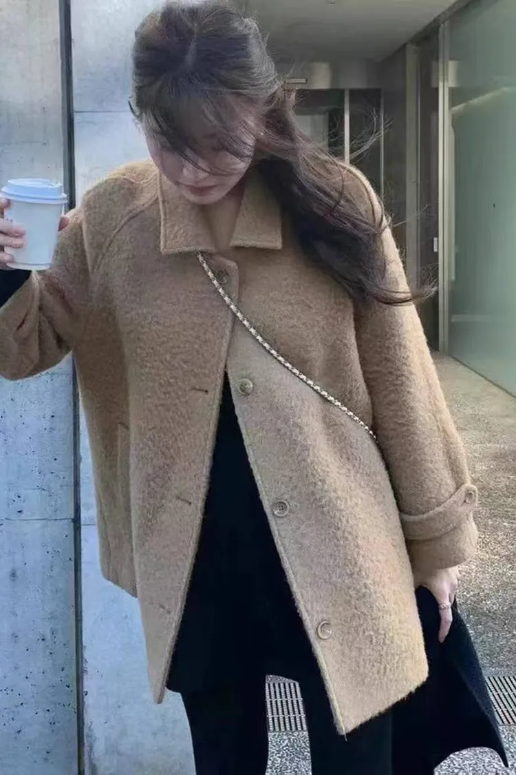 韓國代購 ounce 羊駝毛浪漫大衣外套 中長版大衣外套