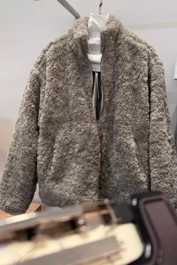 韓國連線款 拉鍊立領毛毛外套 保暖外套