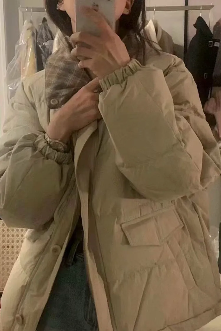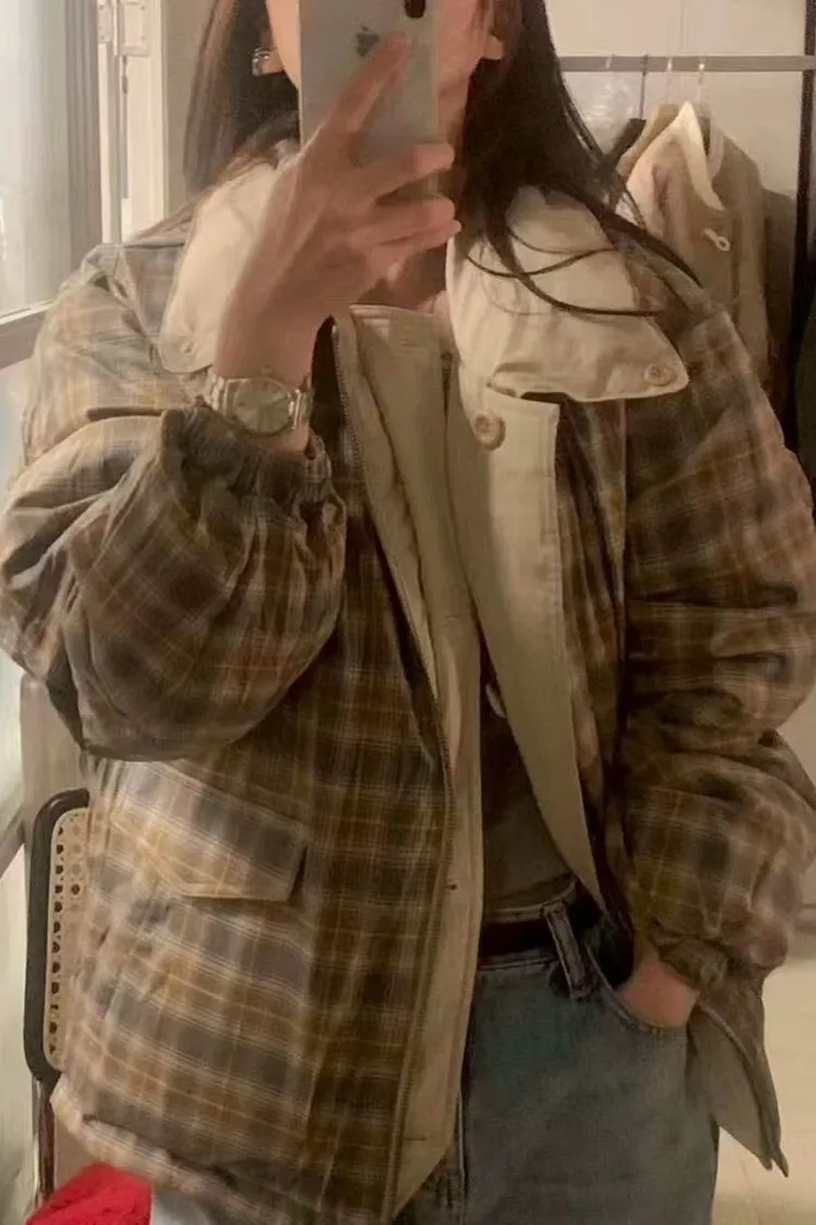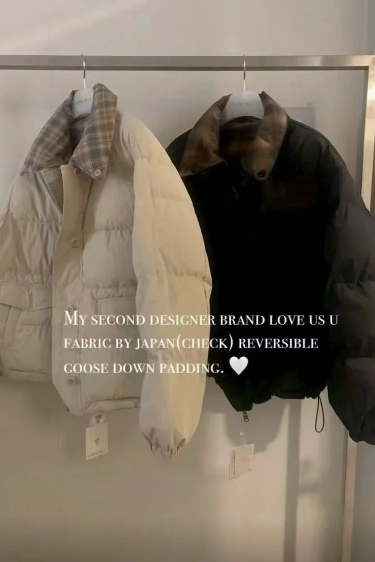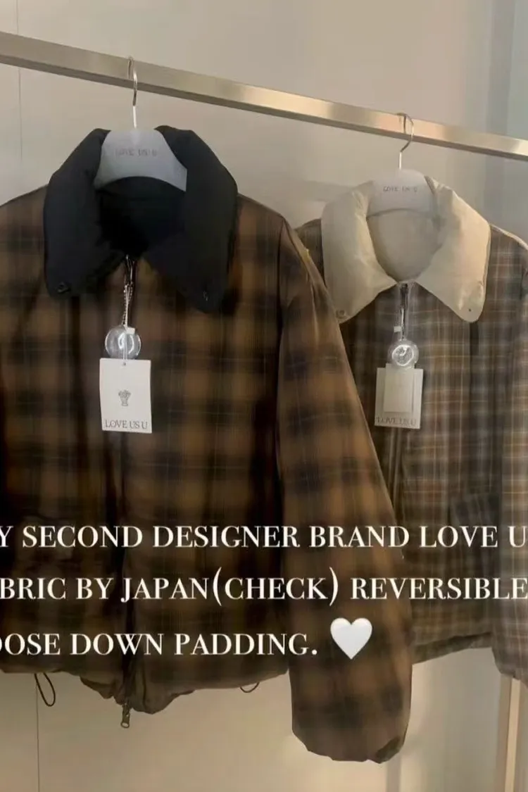 韓國連線款 高級設計師款 鵝絨兩面穿格紋羽絨外套 保暖短版鵝絨外套