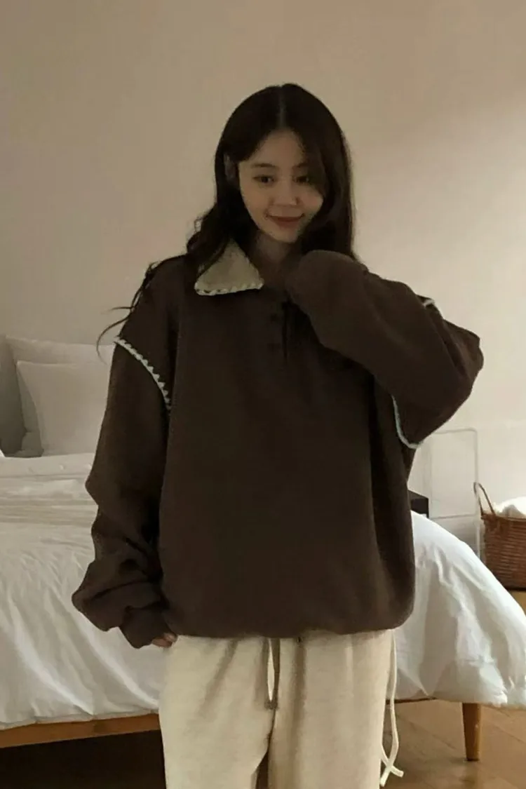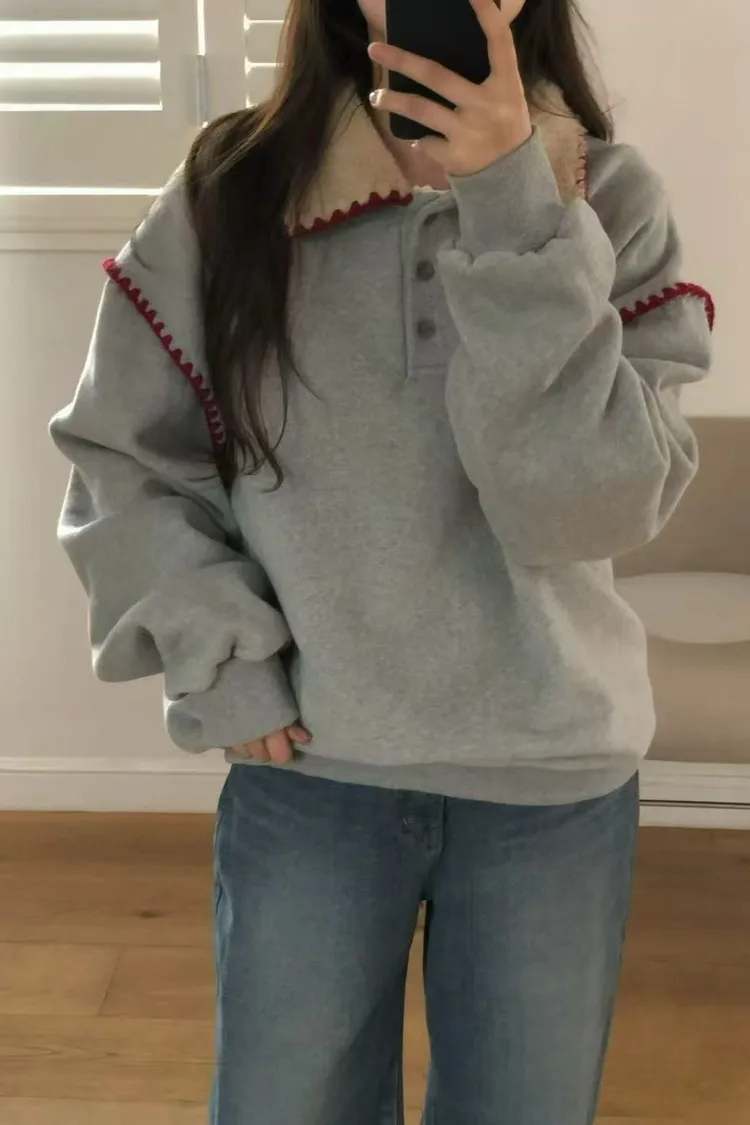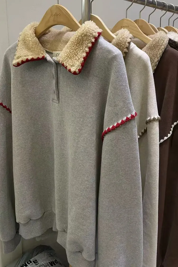 韓國代購 冬季新款 拼接加絨長袖上衣 保暖上衣