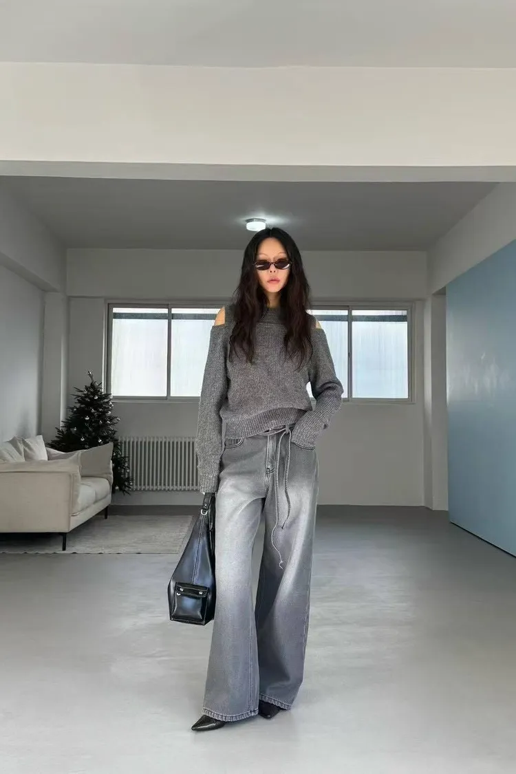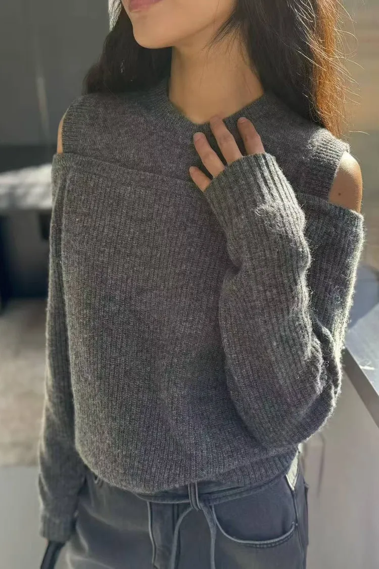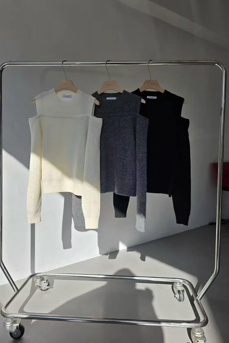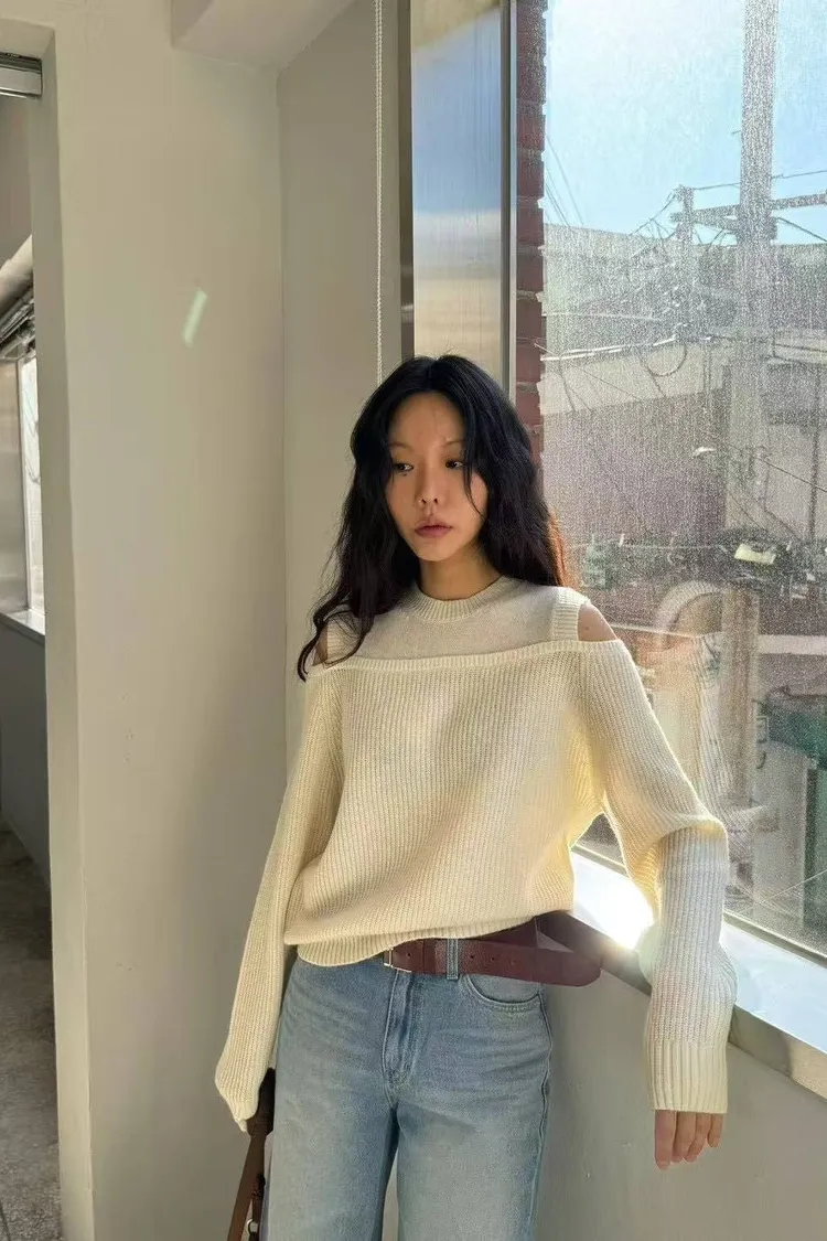 韓國代購 冬季新款 帥氣露肩針織上衣 長袖上衣