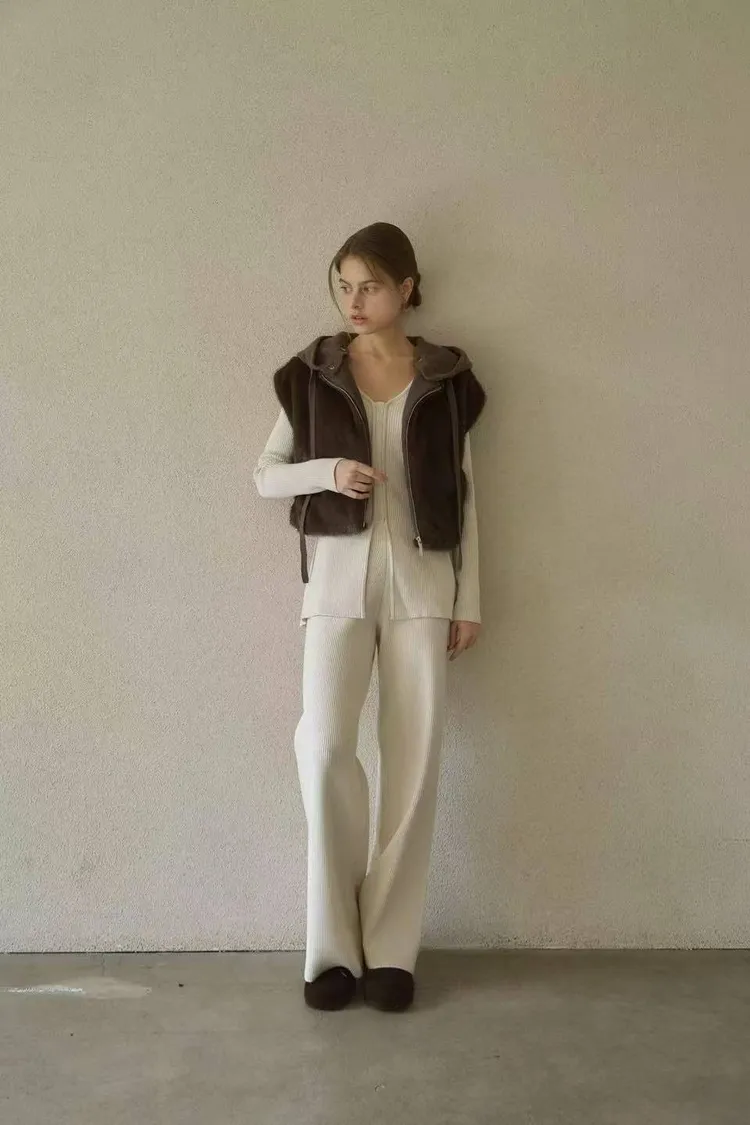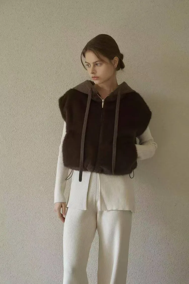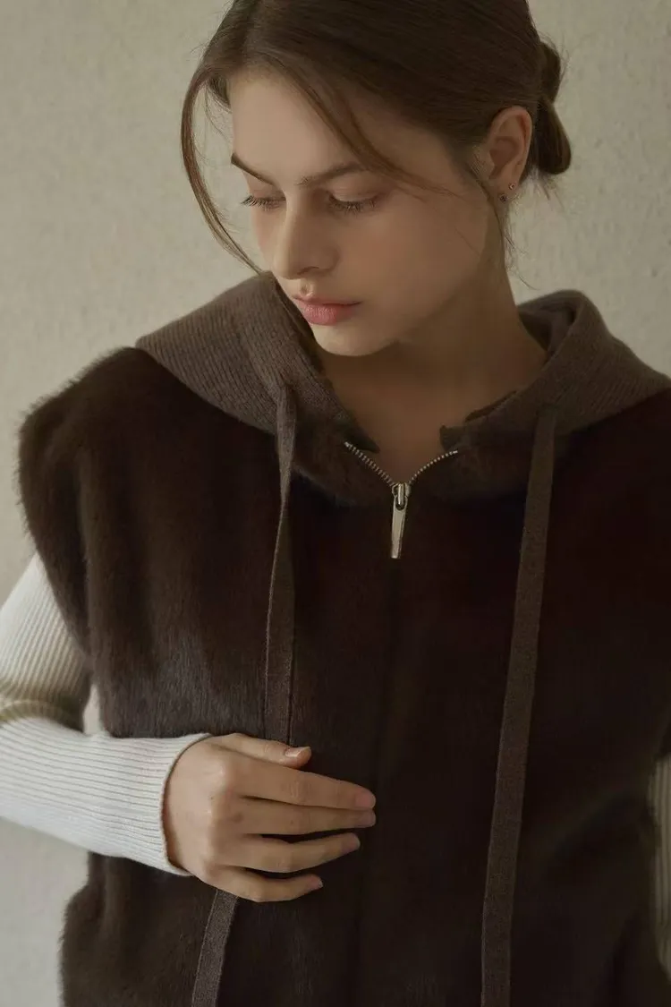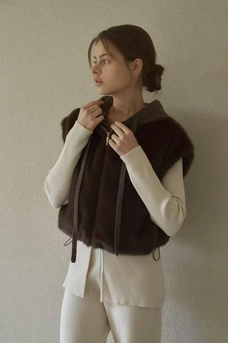韓國連線款 高級設計師款 毛絨連帽背心 毛毛背心外套 短版保暖背心
