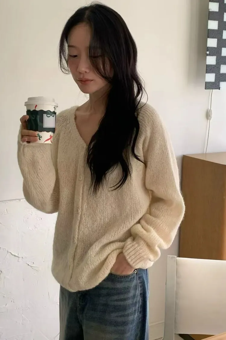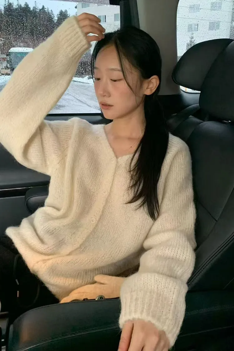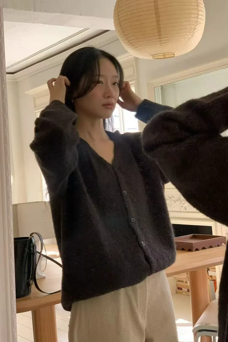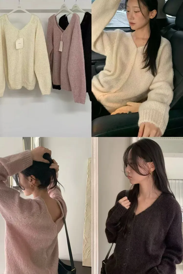 韓國代購 溫柔小姐姐 寬鬆慵懶v領兩面穿毛衣 針織開衫 針織外套