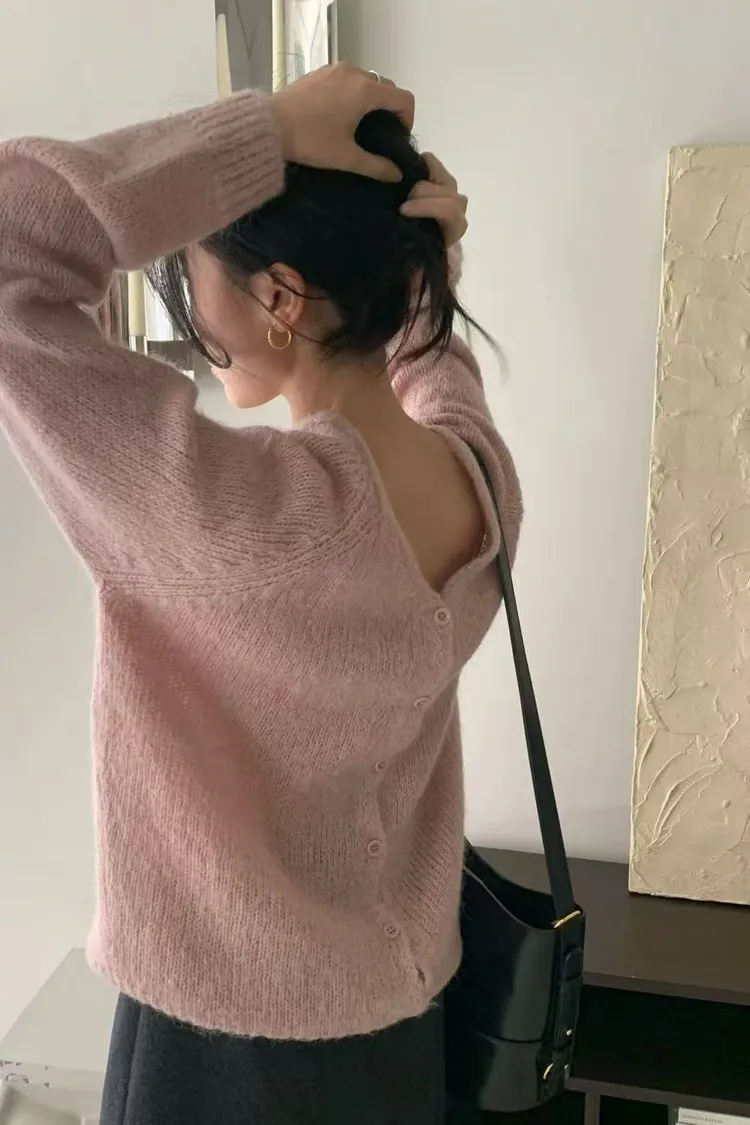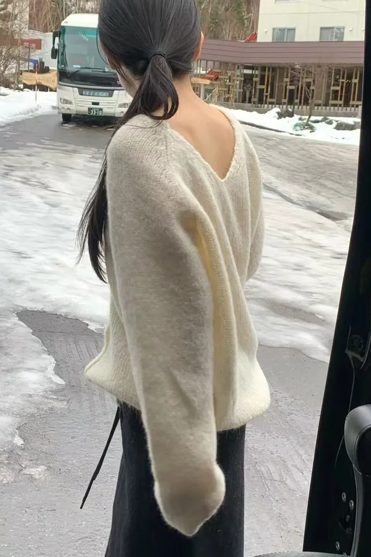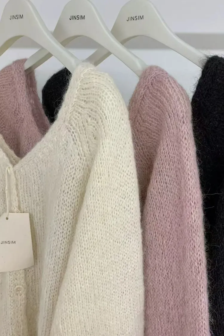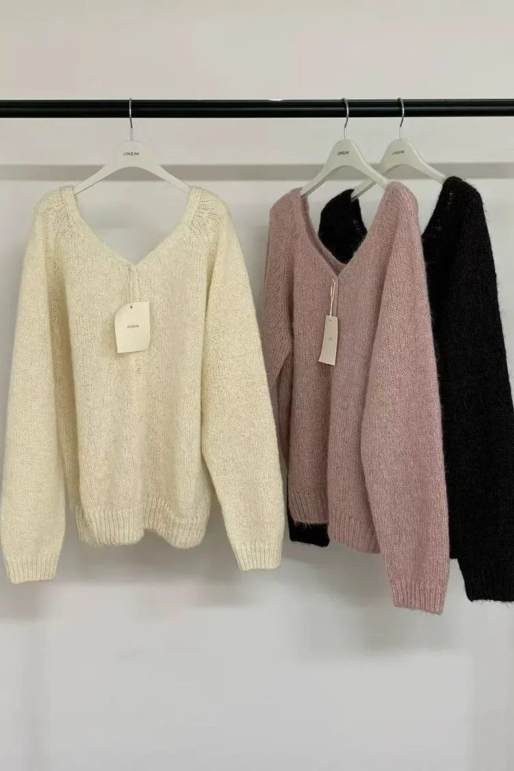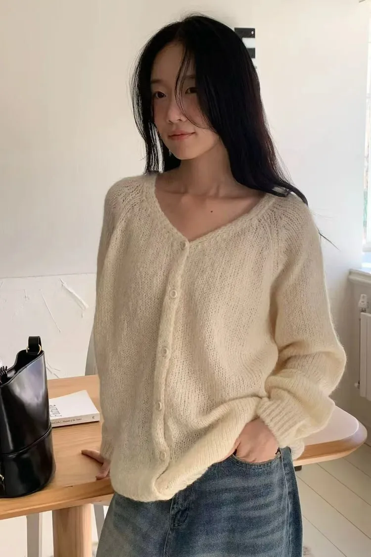 韓國代購 溫柔小姐姐 寬鬆慵懶v領兩面穿毛衣 針織開衫 針織外套