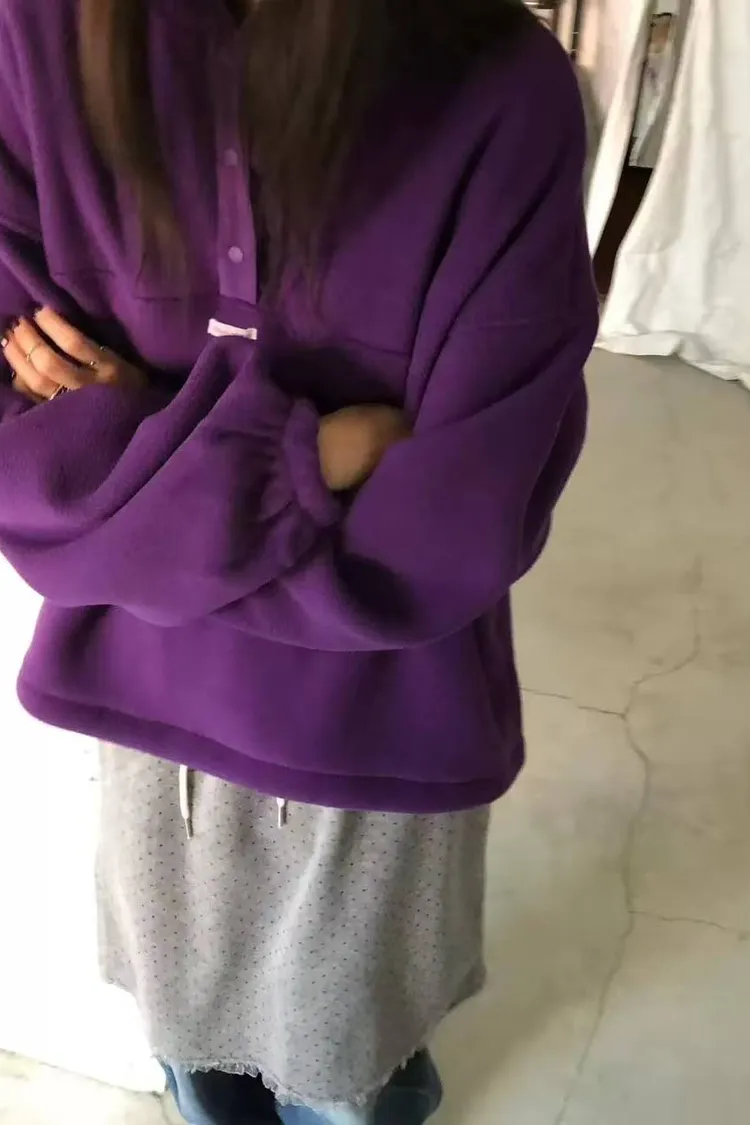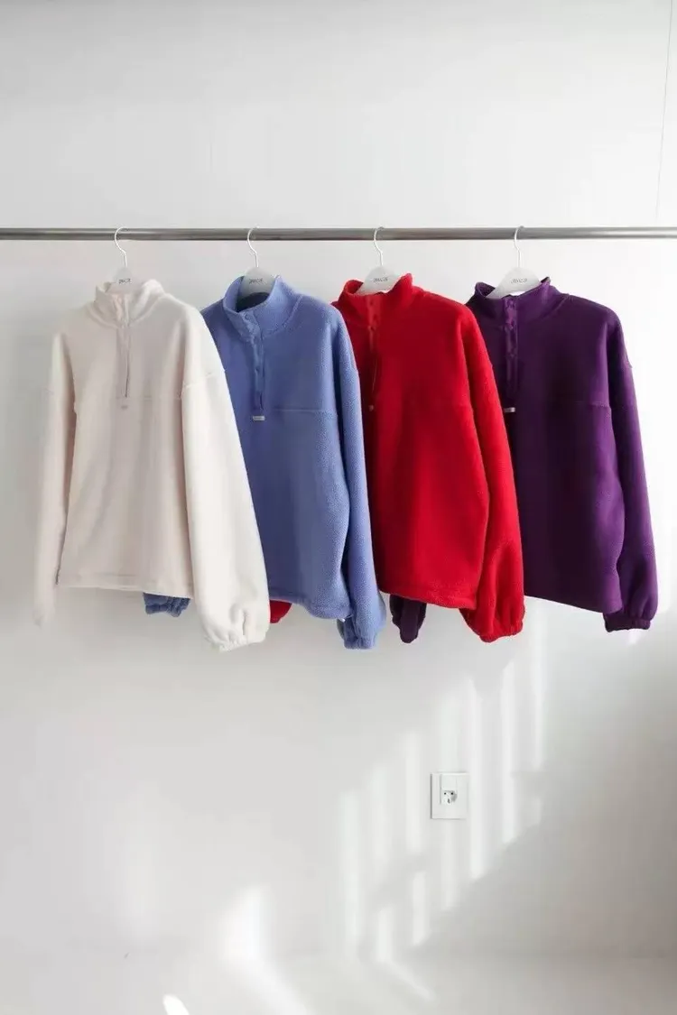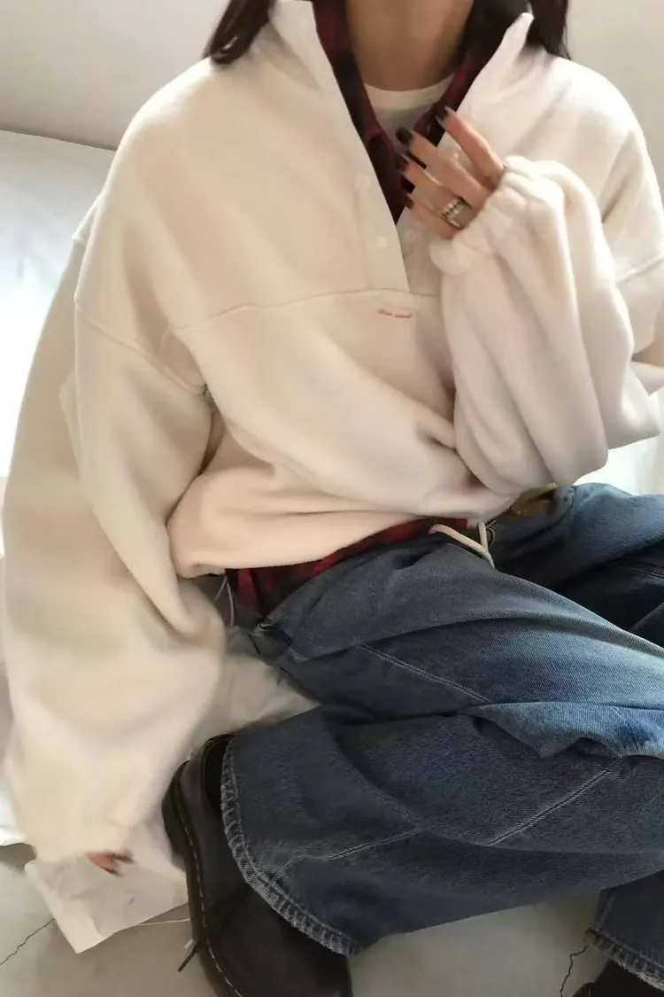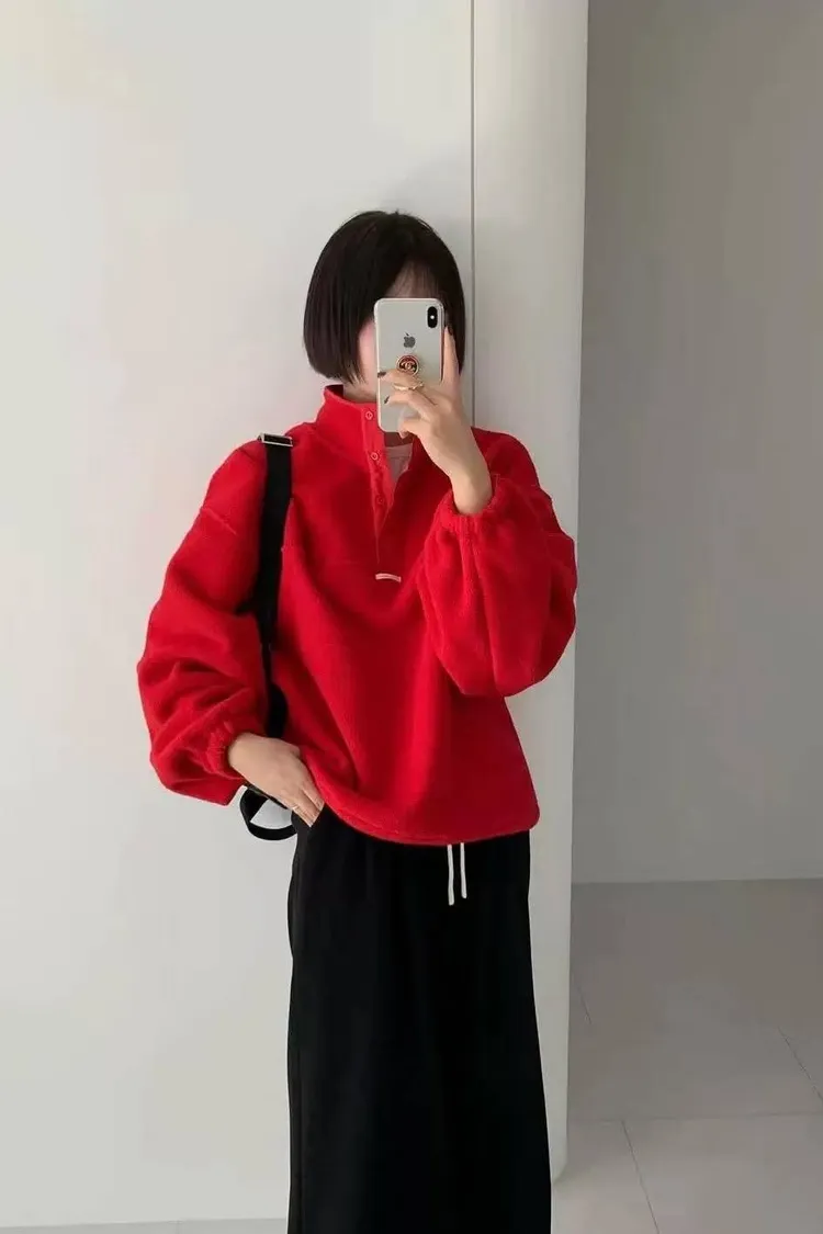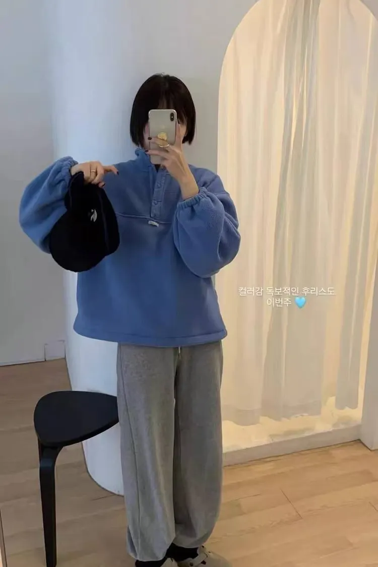 韓國連線款 秋冬款 百搭系扣半高領拉絨上衣 保暖上衣