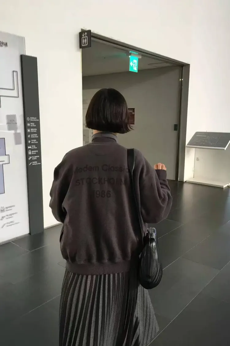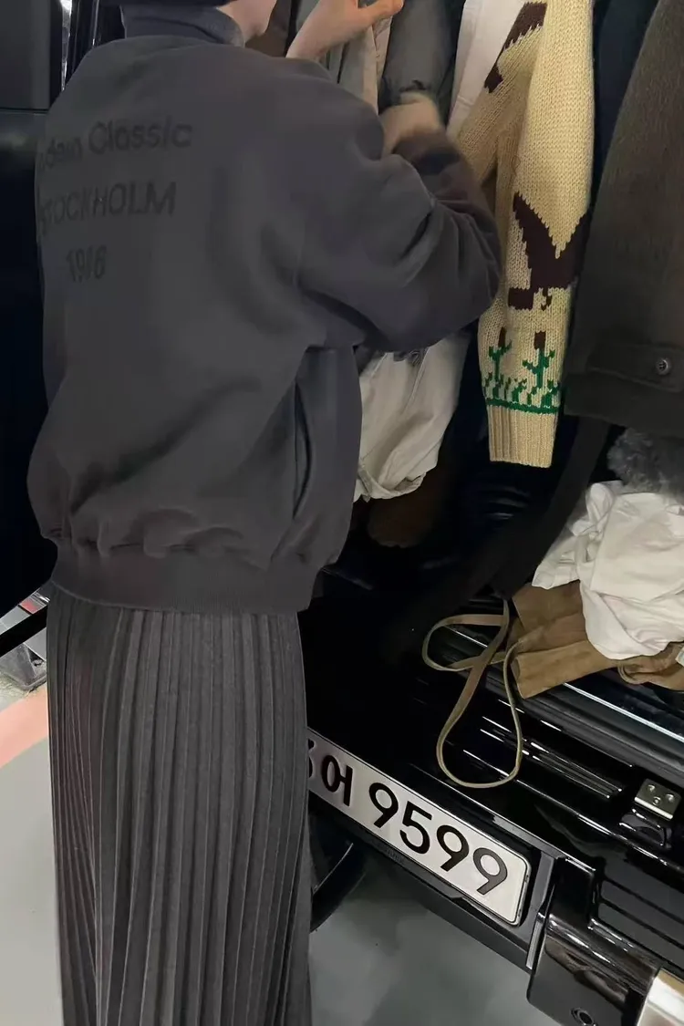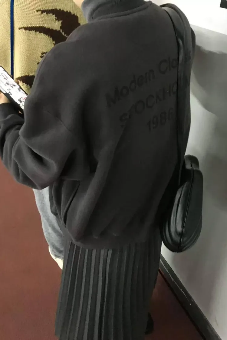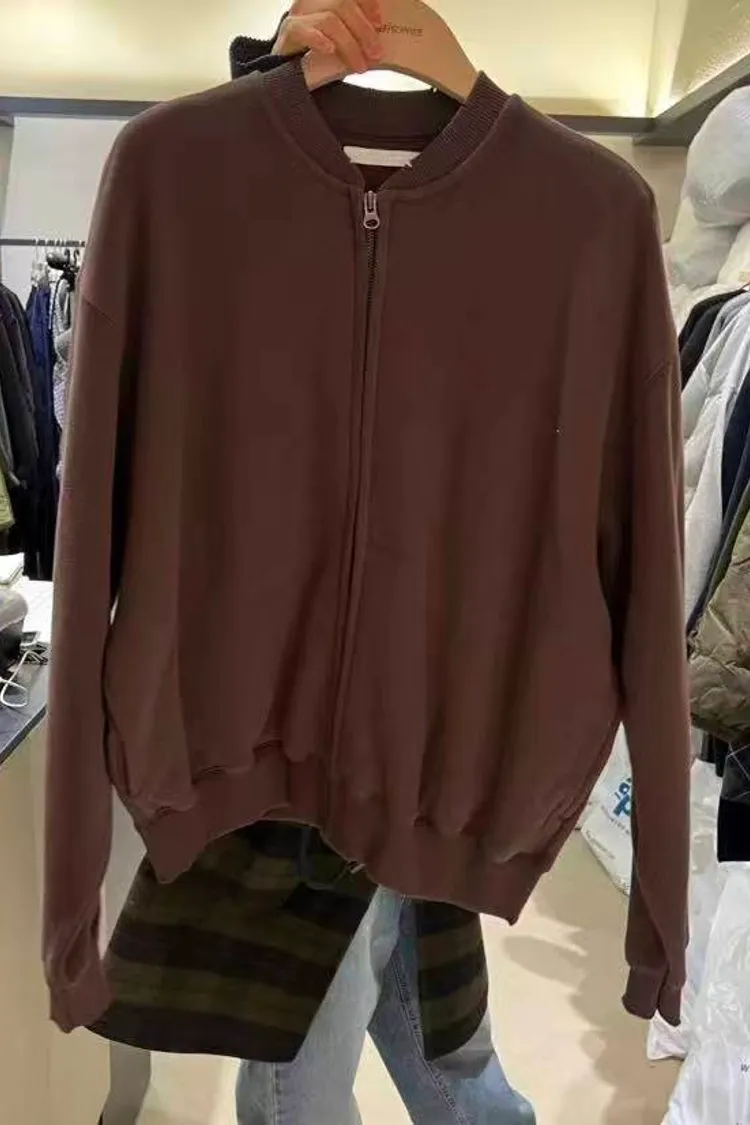 韓國代購 英文字母簡約拉鍊加絨外套 抓破設計外套