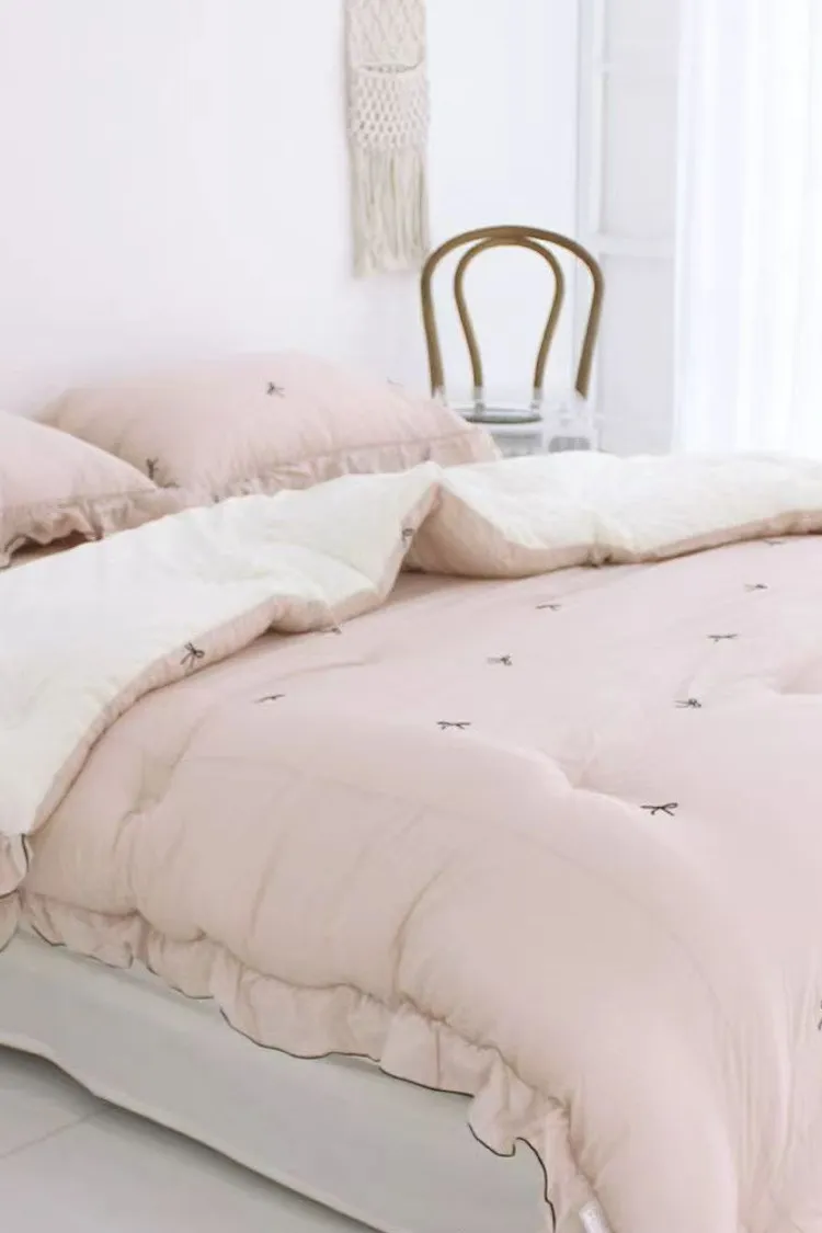 「蝴蝶結雙拼被」正是專為 台灣與亞洲氣候 所設計的韓國冬被,兼顧 保暖度、透氣度與親膚度,是許多重視睡眠品質顧客的指定選擇
