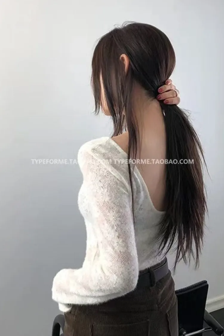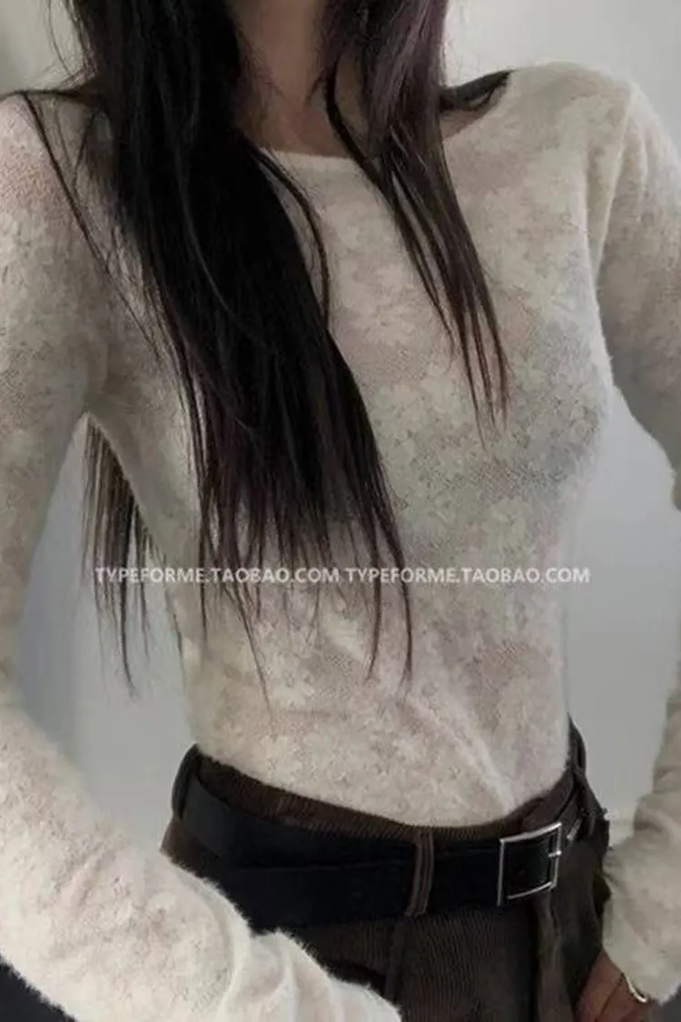 韓國代購 性感後背大U領 彈力蕾絲上衣 內刷毛打底衫 保暖拉絨上衣