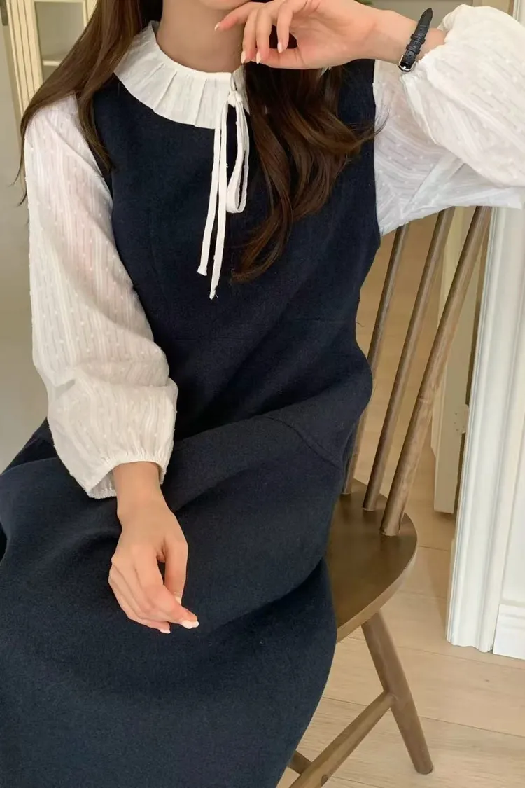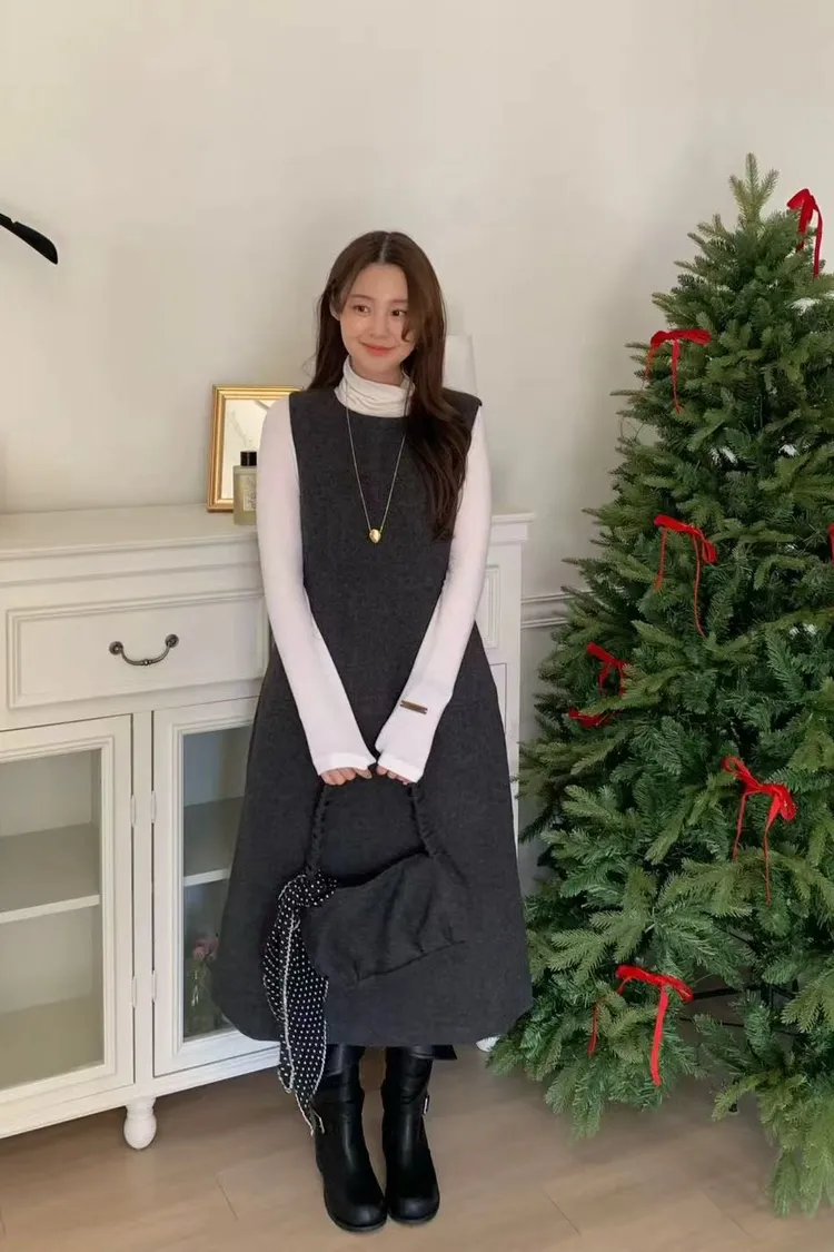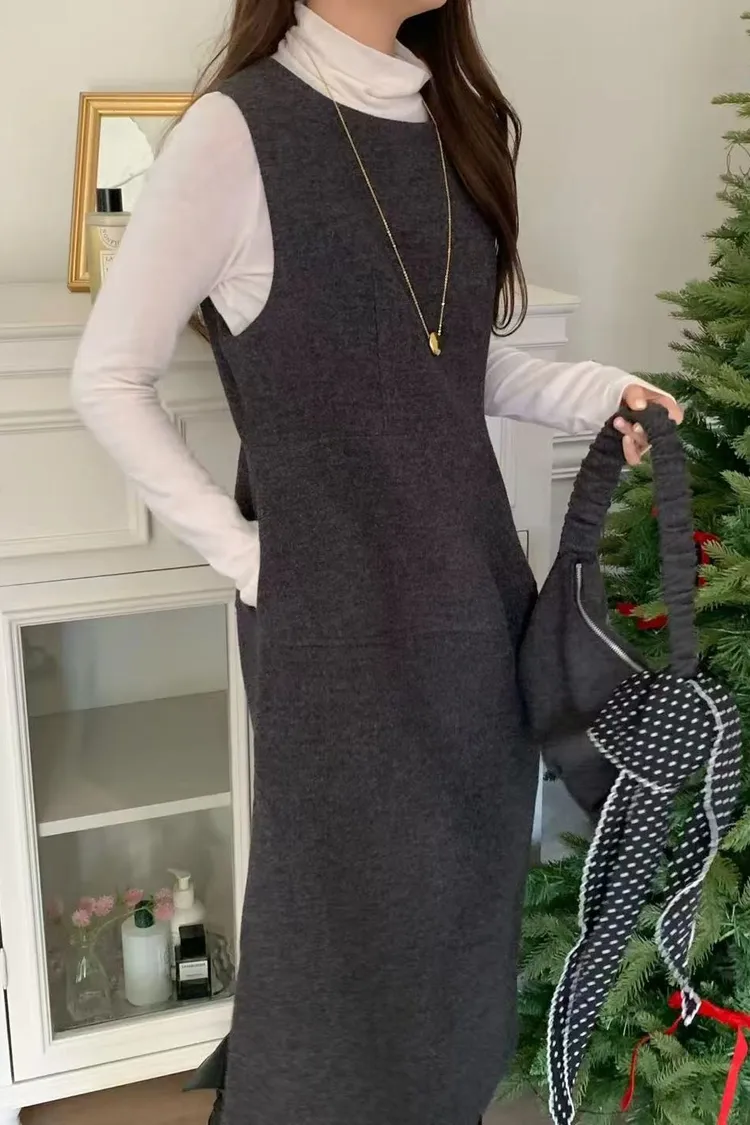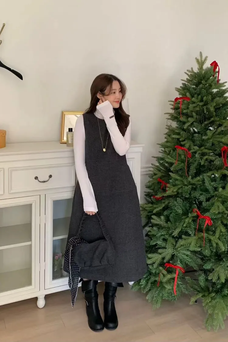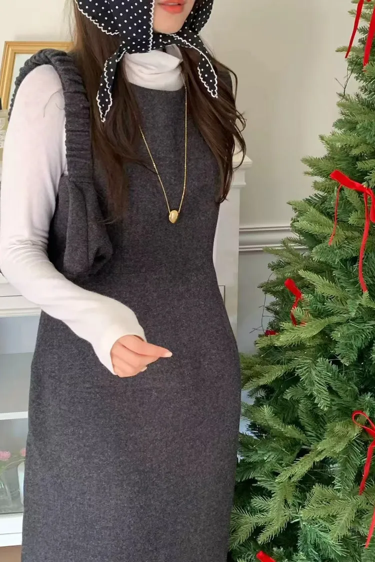 韓國代購 ONE MONE 含包包 氣質圍巾無袖洋裝 長洋裝 三件套