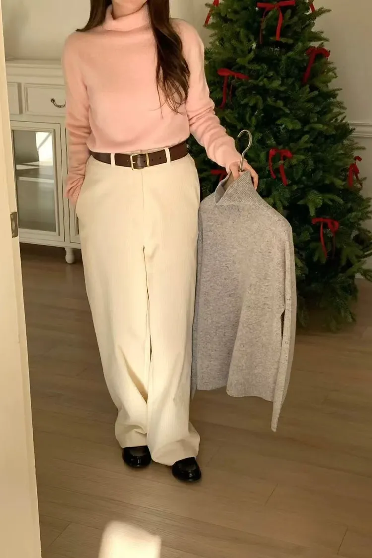 韓國代購 ONE MONE 羊毛天絲 鬆緊邀加絨長褲 休閒長褲