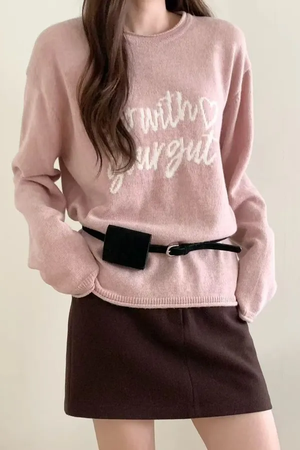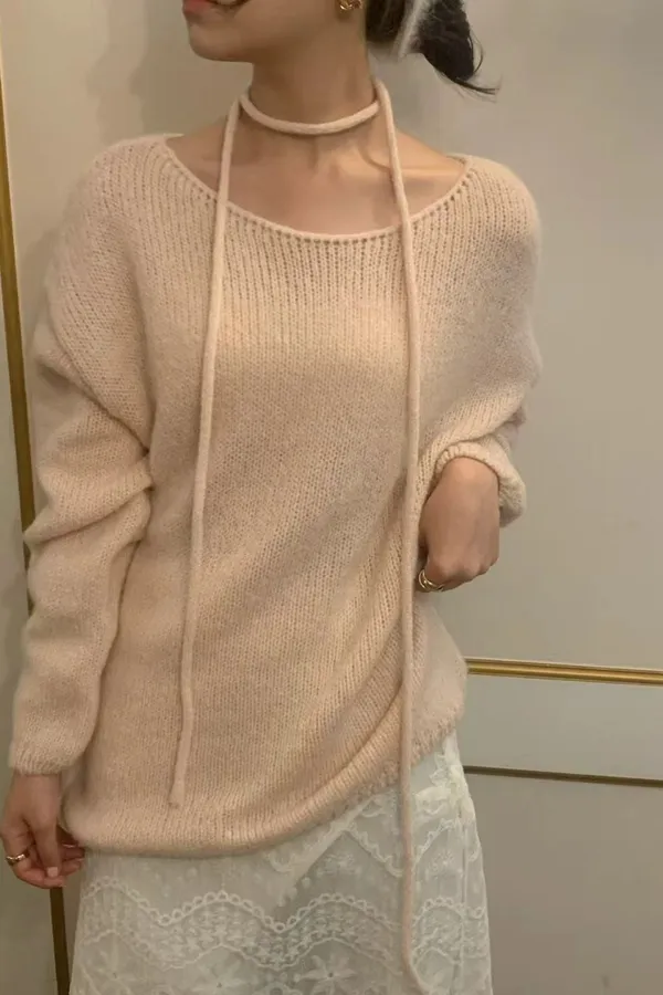 溫柔感寬鬆長袖毛衣 綁帶設計上衣