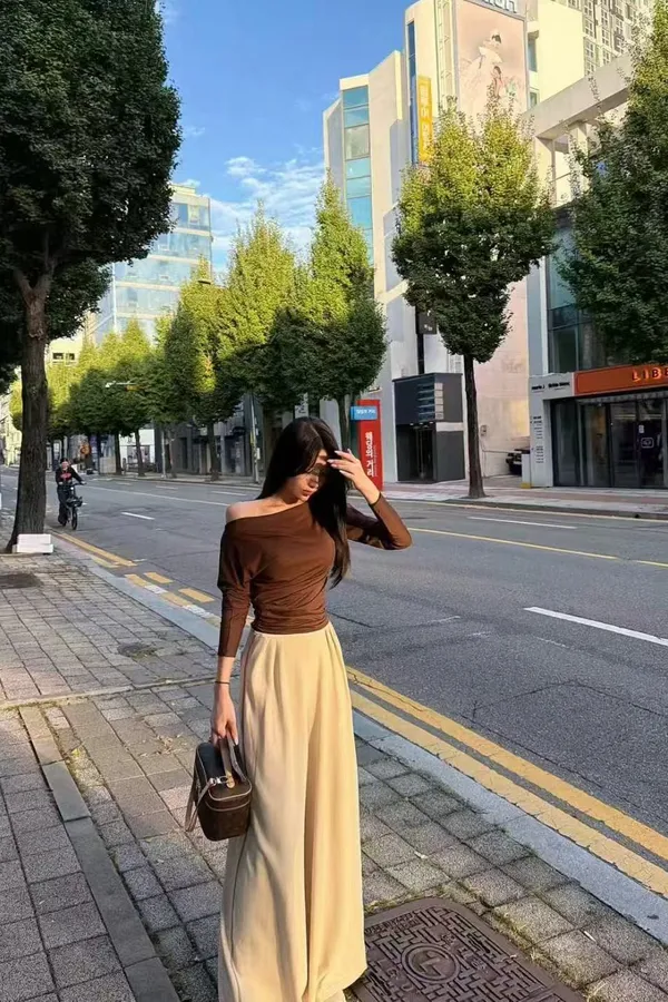 微露鎖骨長袖T 高腰寬褲套裝 百搭必收款