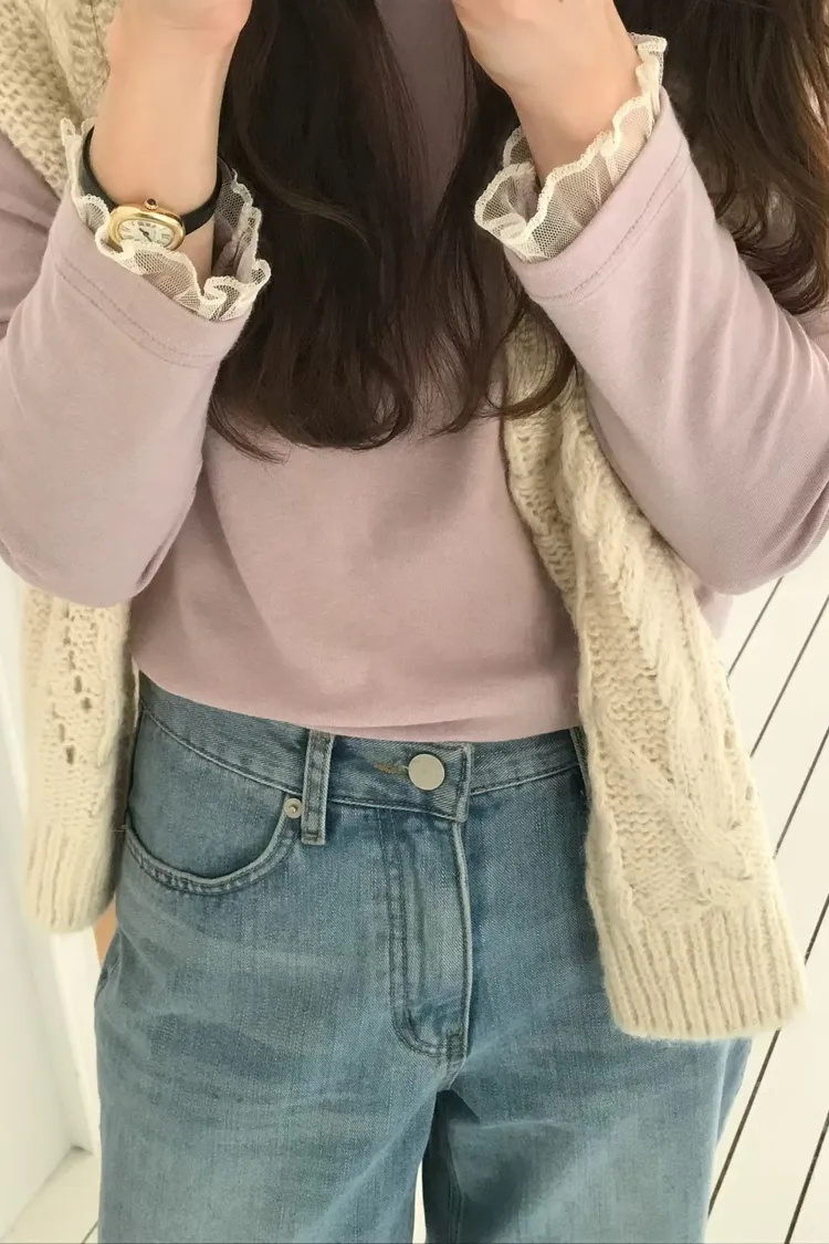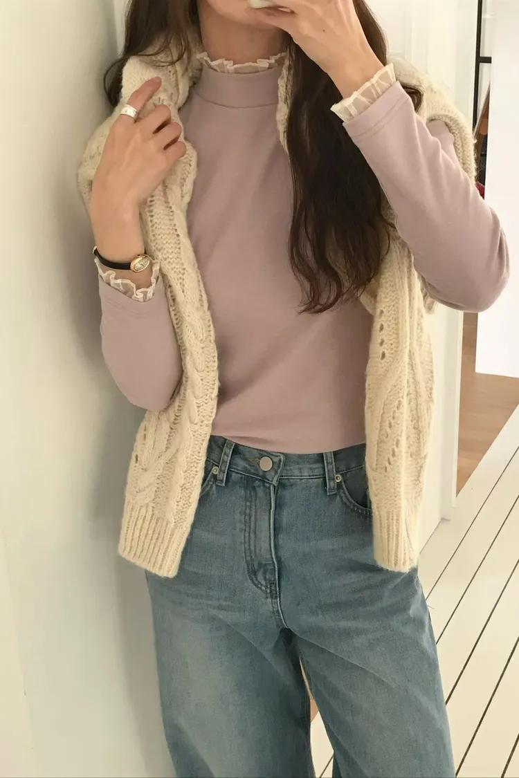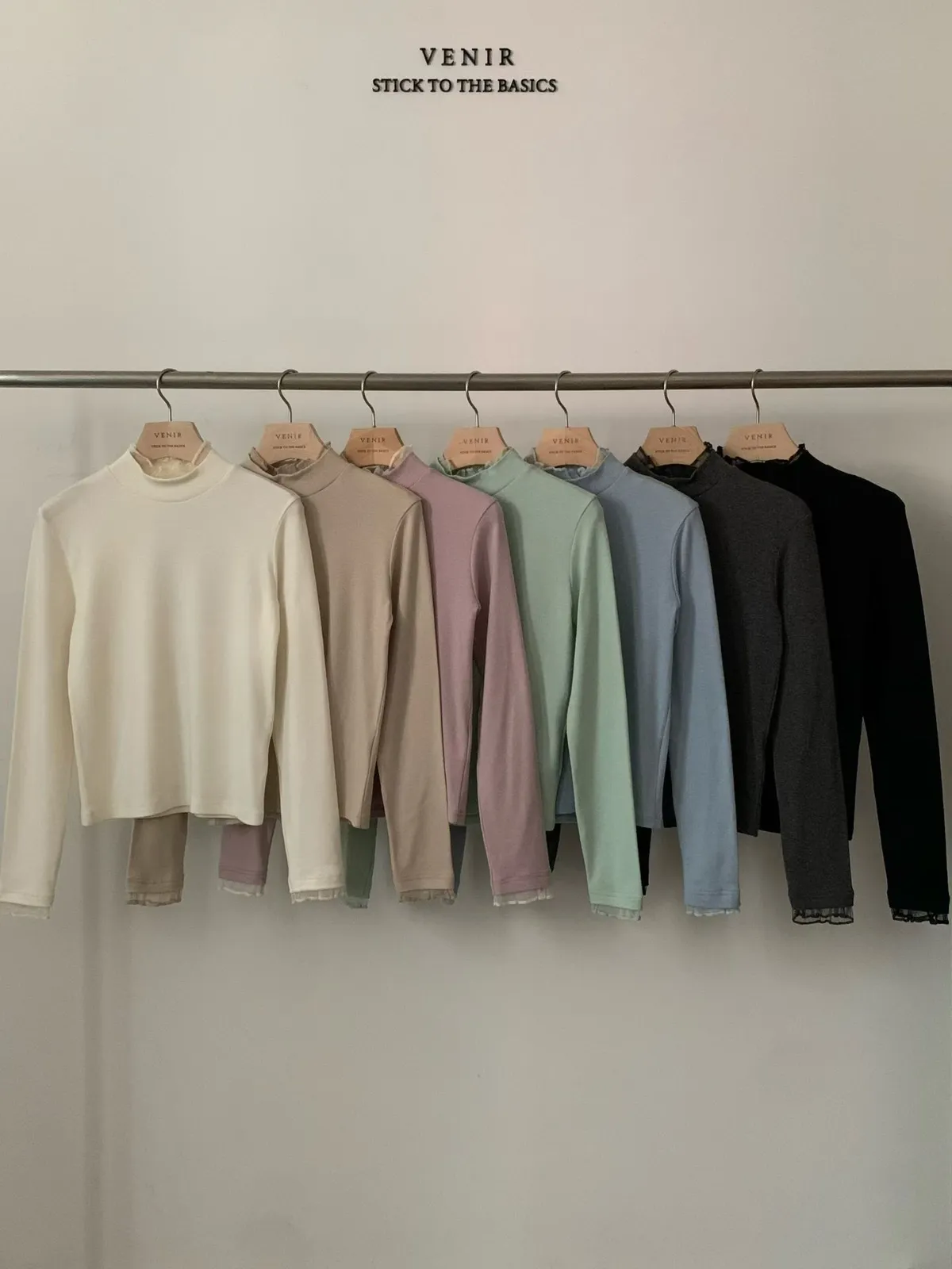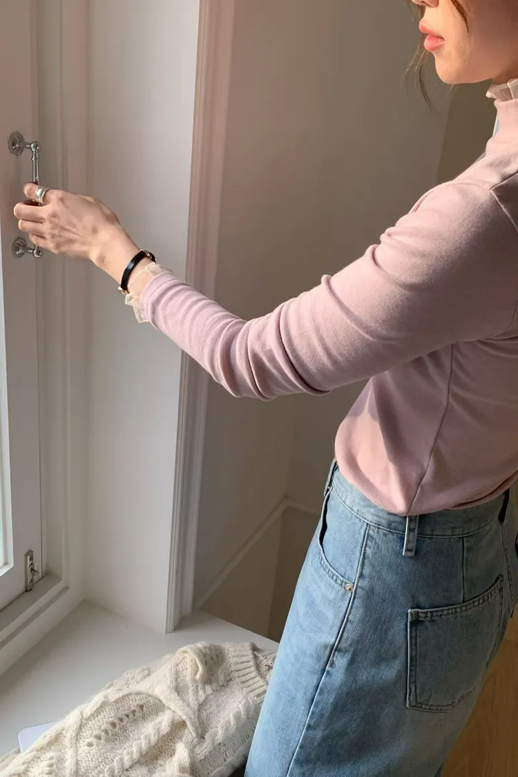 正韓秋冬單品內搭推薦 莫代爾彈力 蕾絲拼接百搭上衣 打底衫