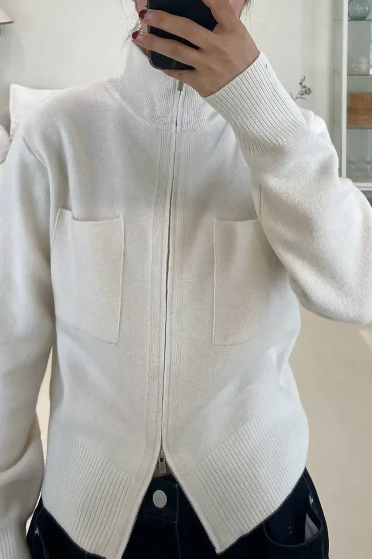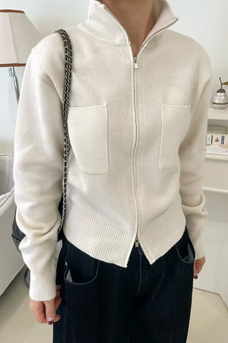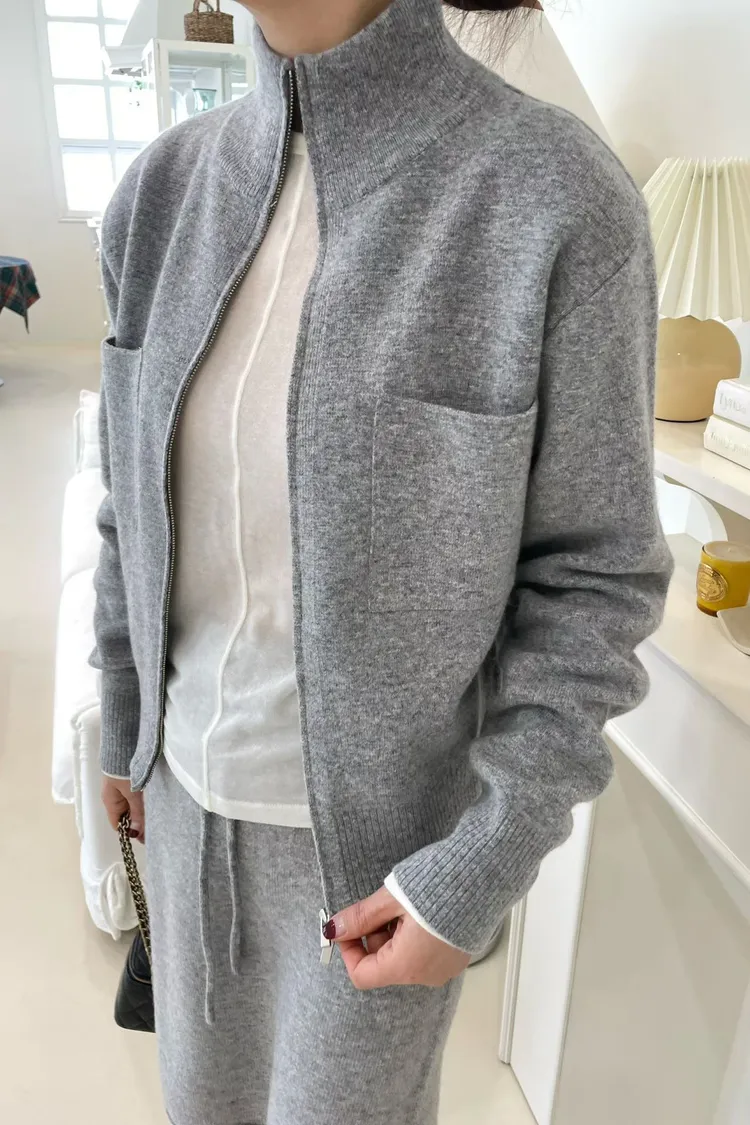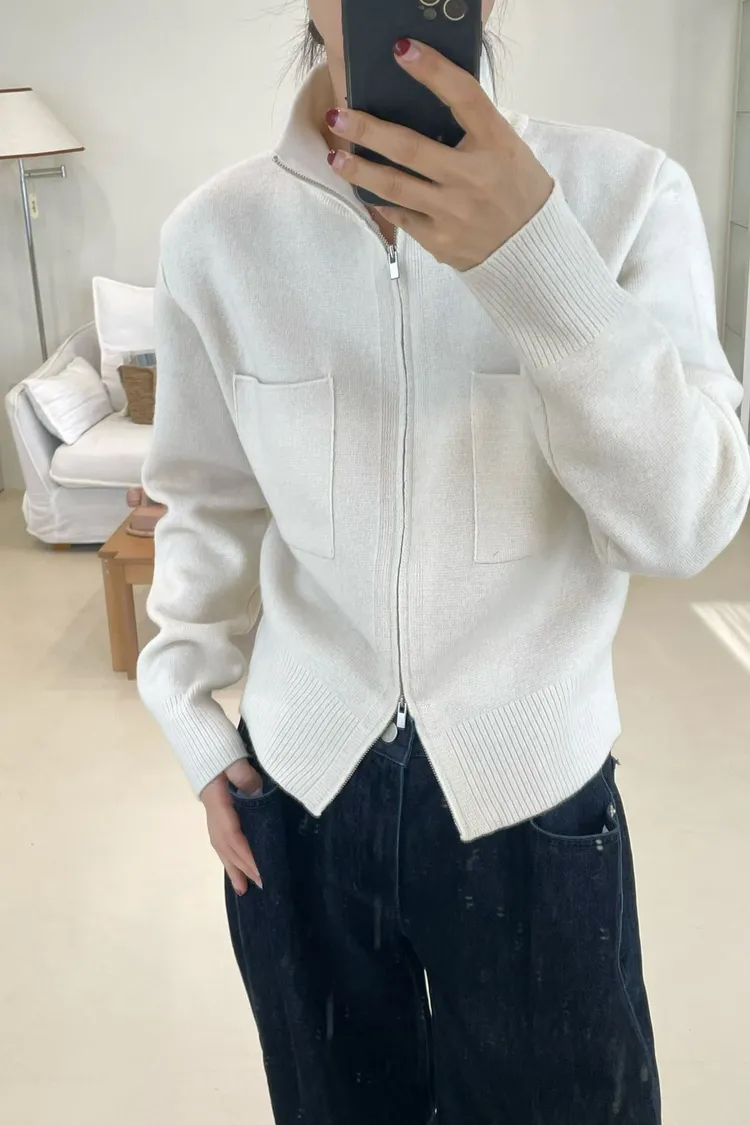 Cashmere 克什米爾羊絨羊毛拉鍊上衣外套 短版羊毛針織毛衣