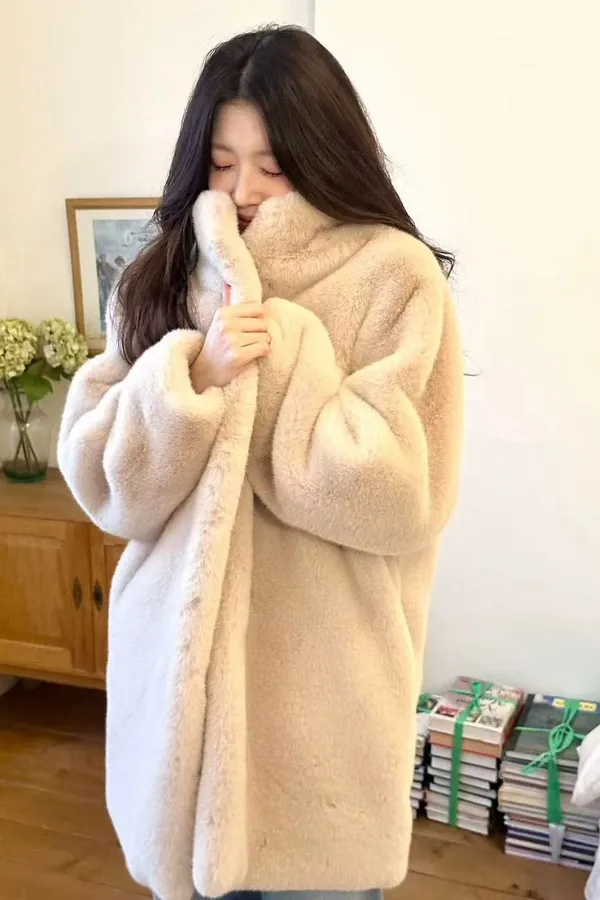 韓國代購 冬季新款 中長款保暖毛毛厚外套