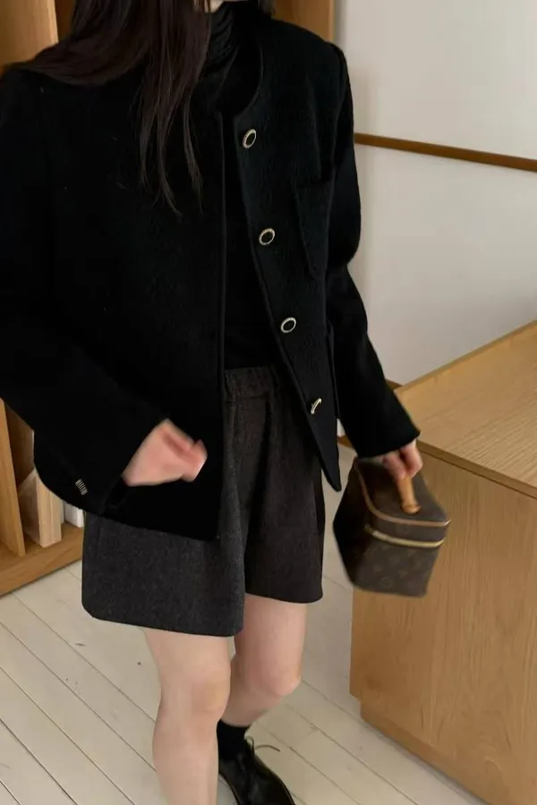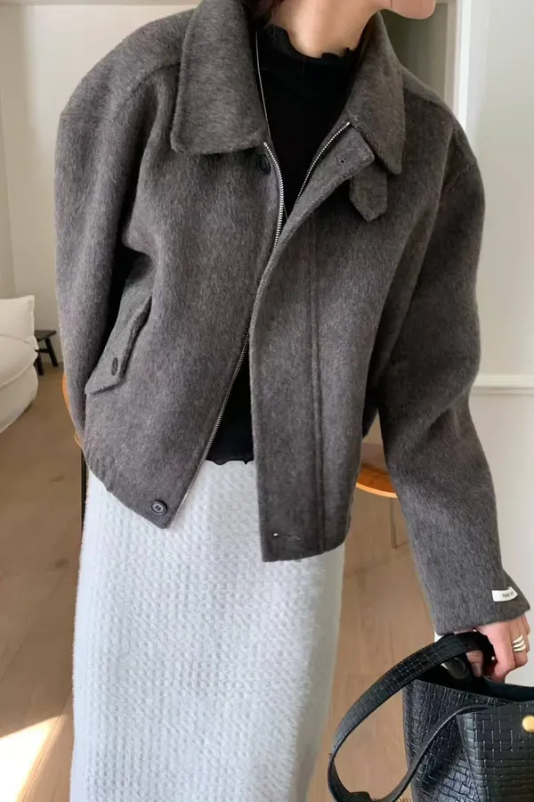 韓國代購 signature 質感短款羊毛外套 拉鍊外套