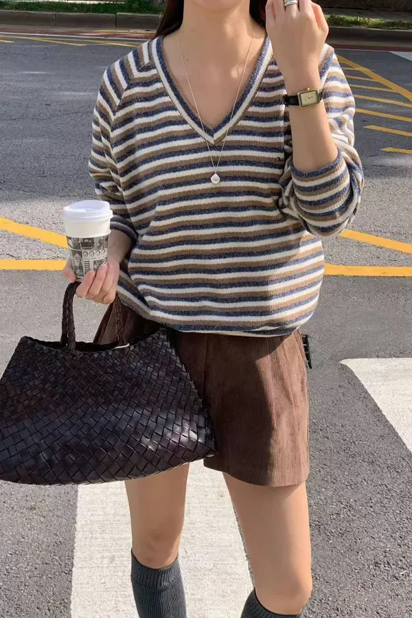 韓國代購 signature V領條紋上衣