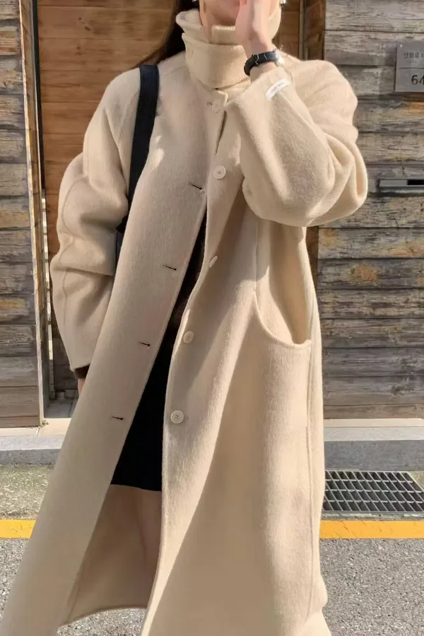 韓國代購 秋冬新款 質感 立領長版羊毛大衣外套