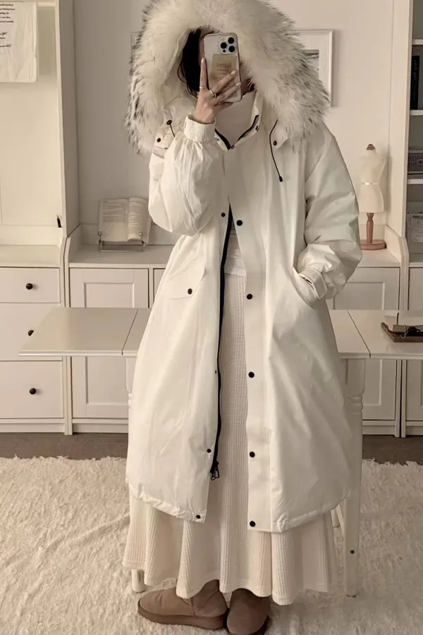 出國保暖羽絨外套推薦 90%鴨絨狐狸毛領羽絨外套 長版羽絨外套