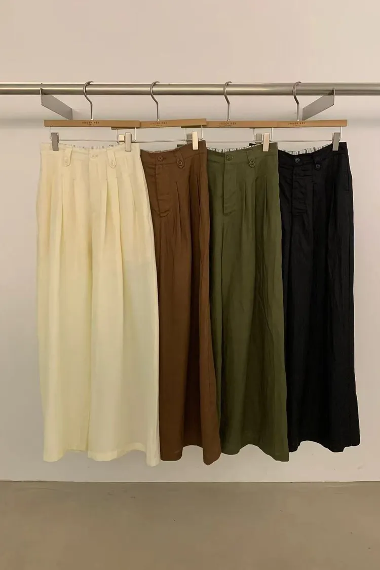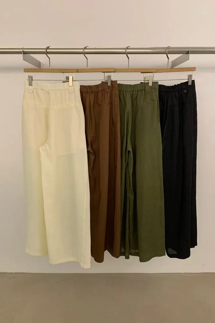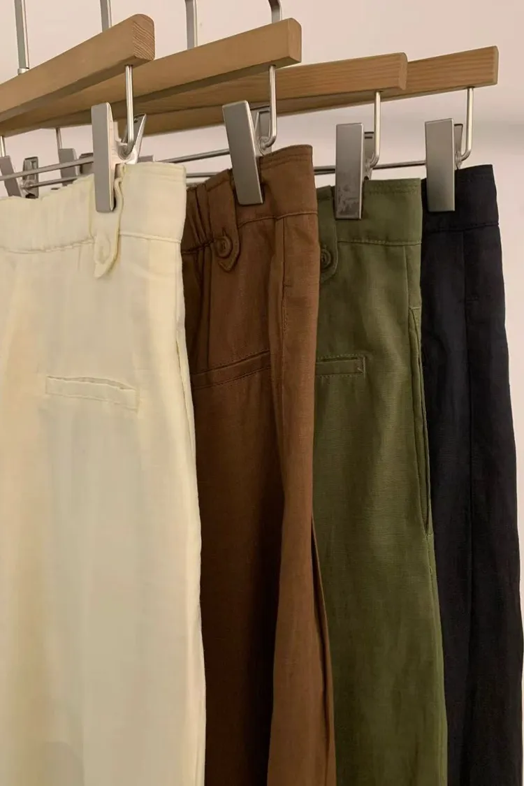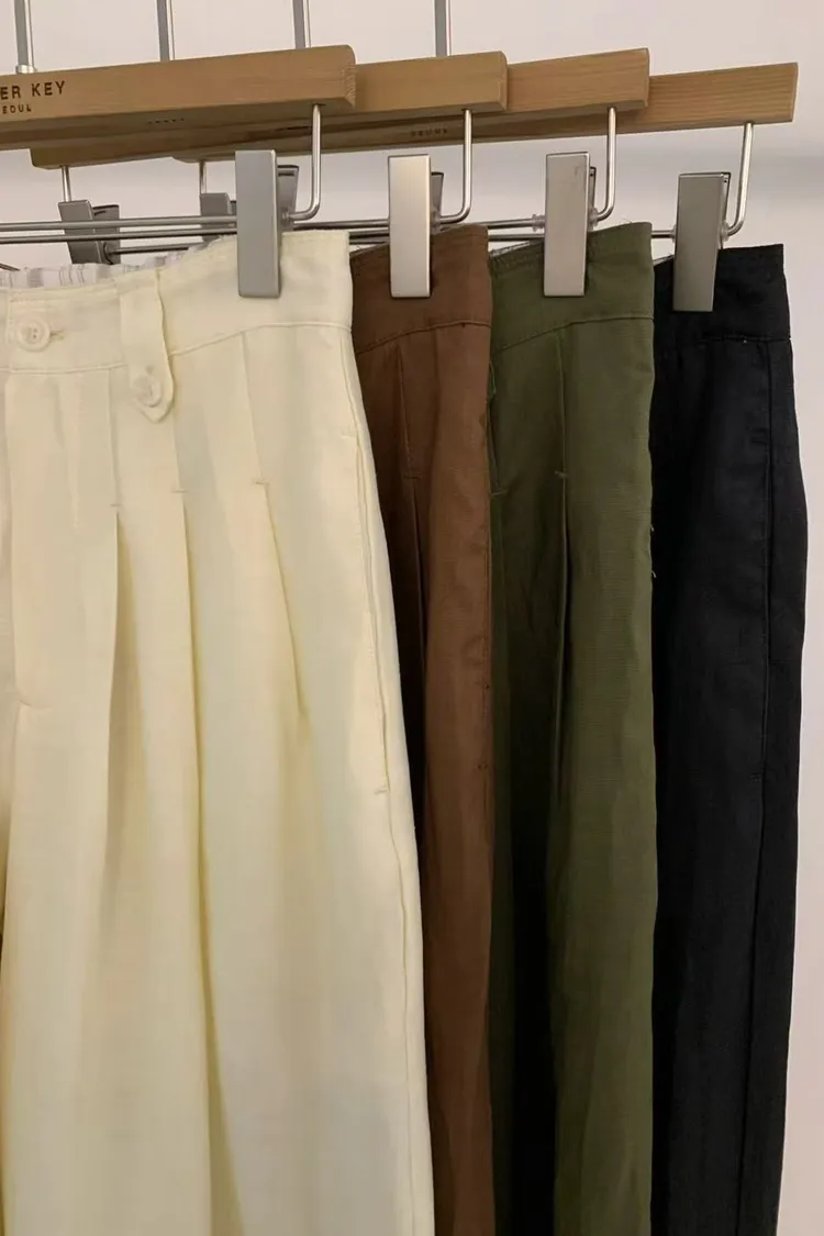正韓女裝 超顯瘦透氣薄款修身落地闊腿褲