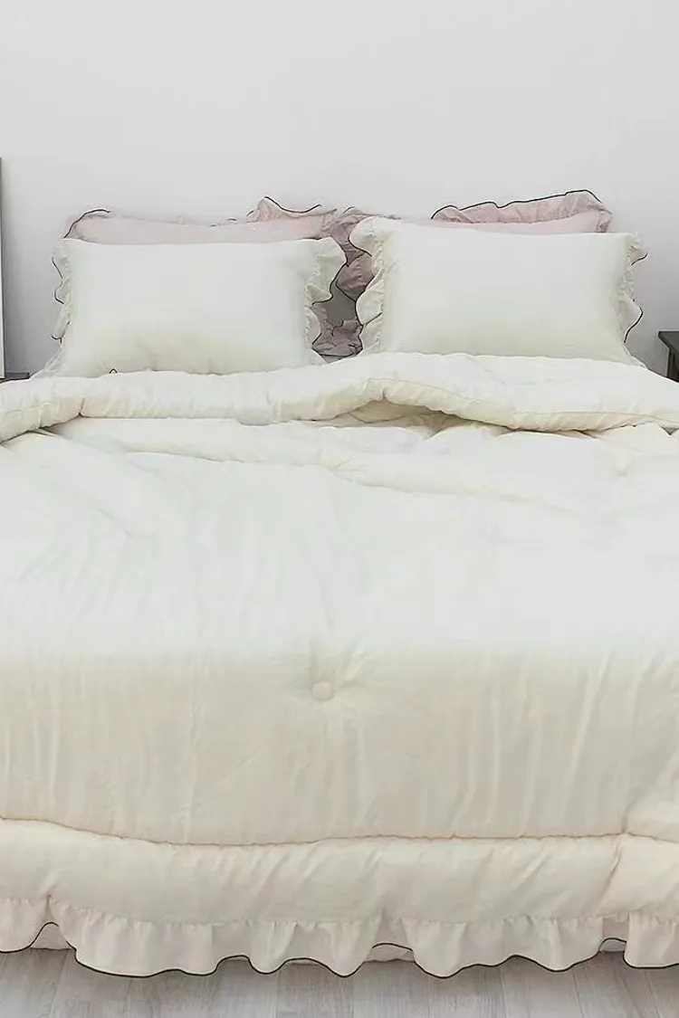 百分百韓國獨家設計 暢銷款推薦 超Q彈輕柔 素面荷葉邊莫代爾四季被 台灣公主被
